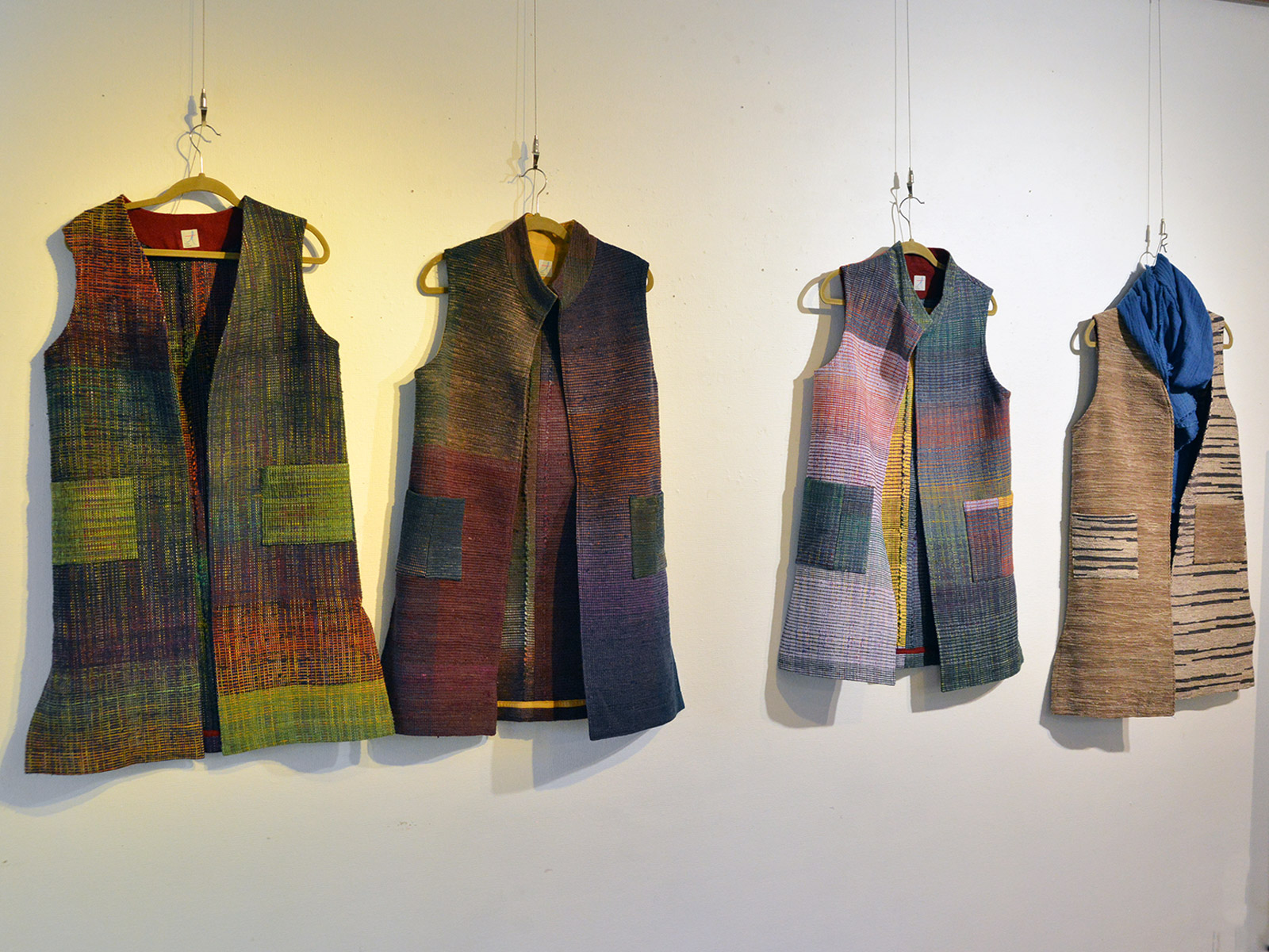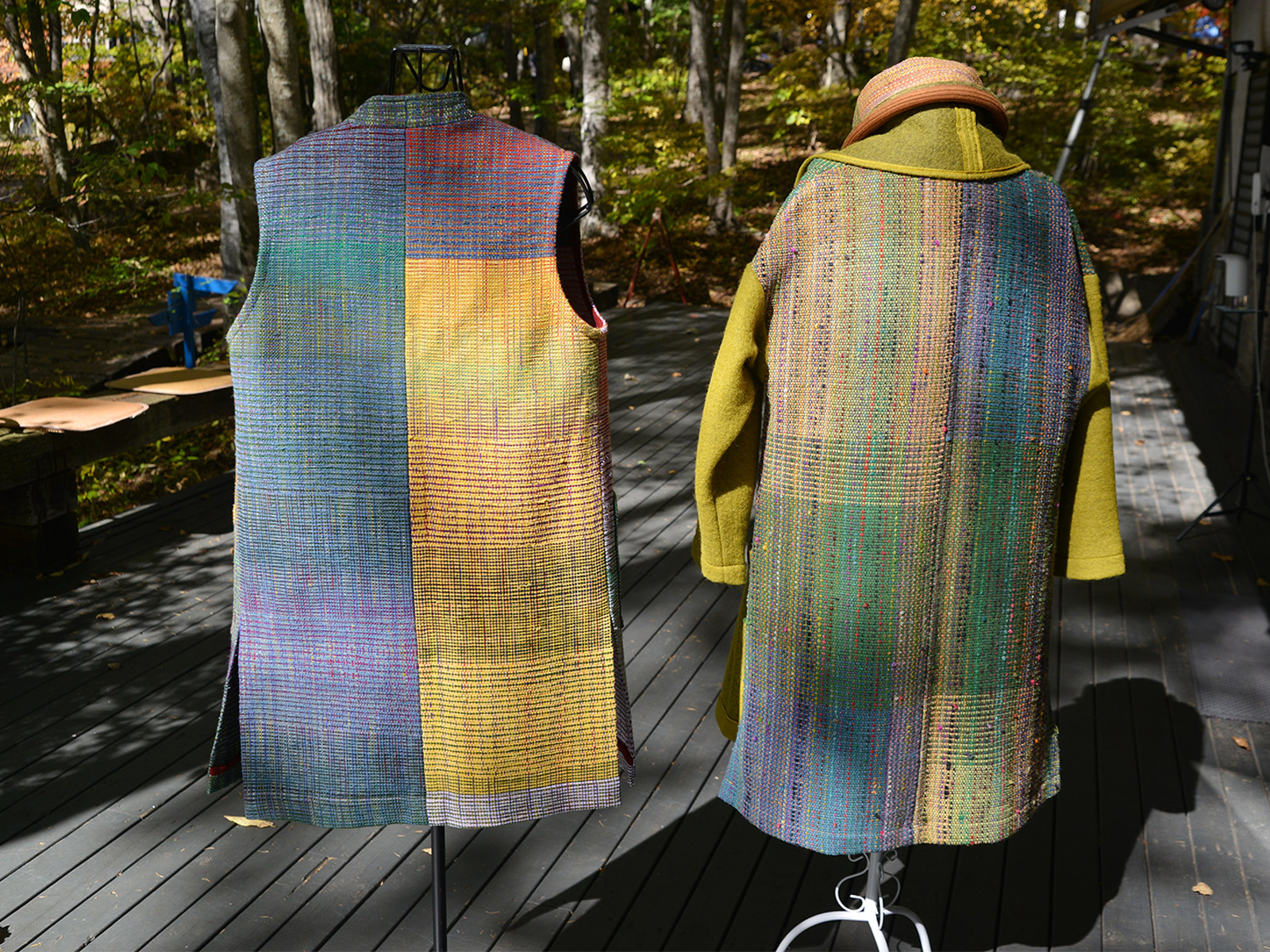 色数の多さに圧倒されるかもしれません。しかし、様々な色と質感が重なり合った裂織だからこそ、コーディネートの幅も広くなります。
