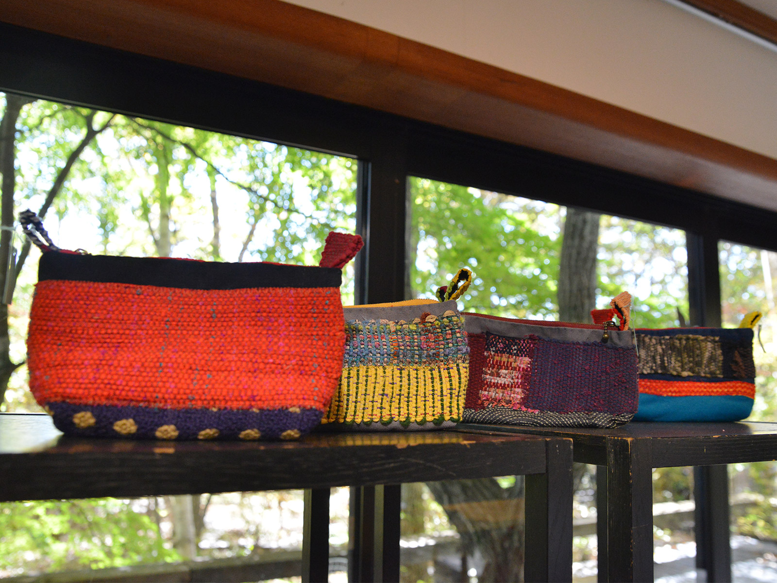 フィンランド伝統の裂織であるポッパナ織りや、古布、棚機さんご自身で染められた糸を使った作品もあります。