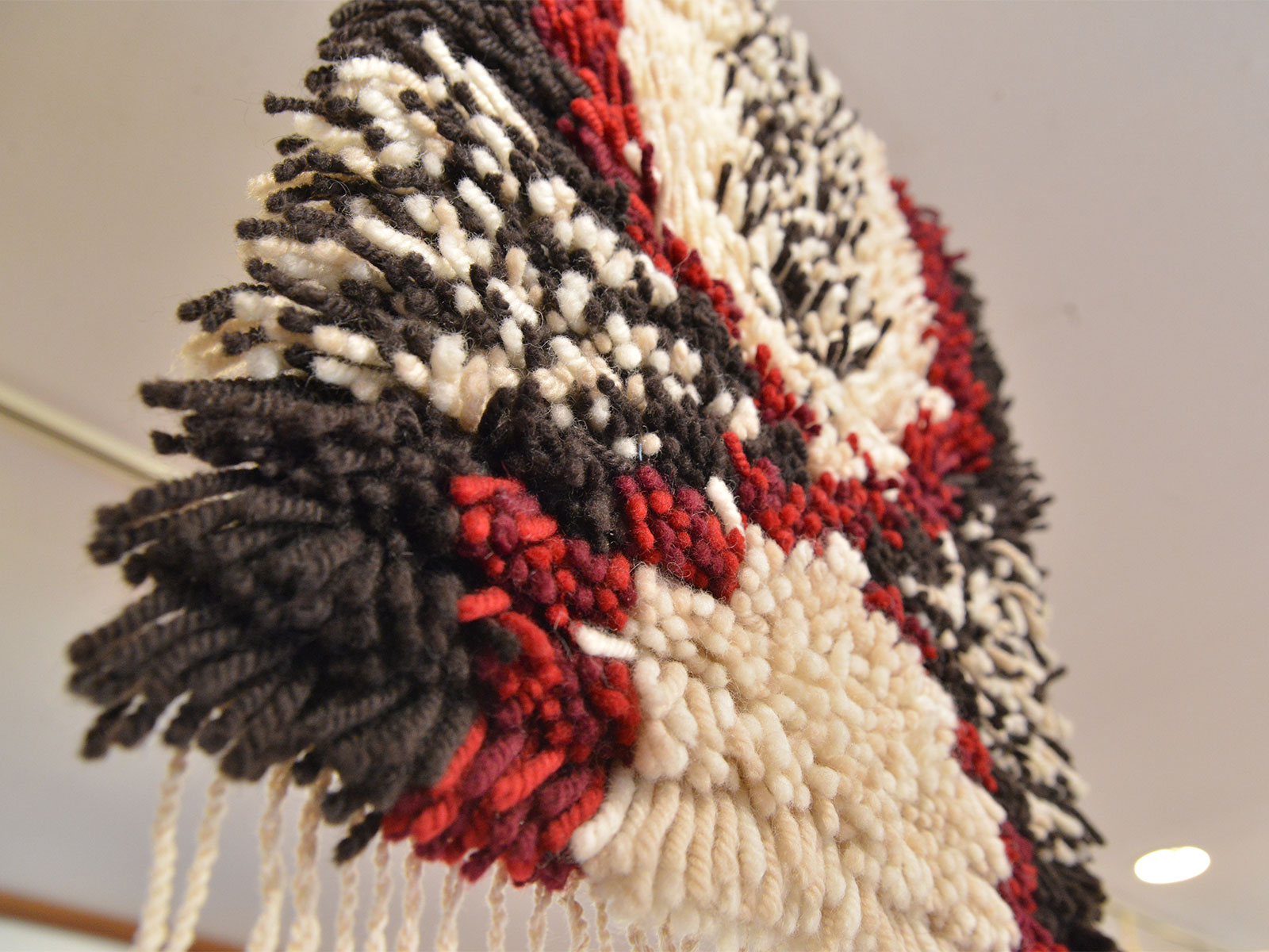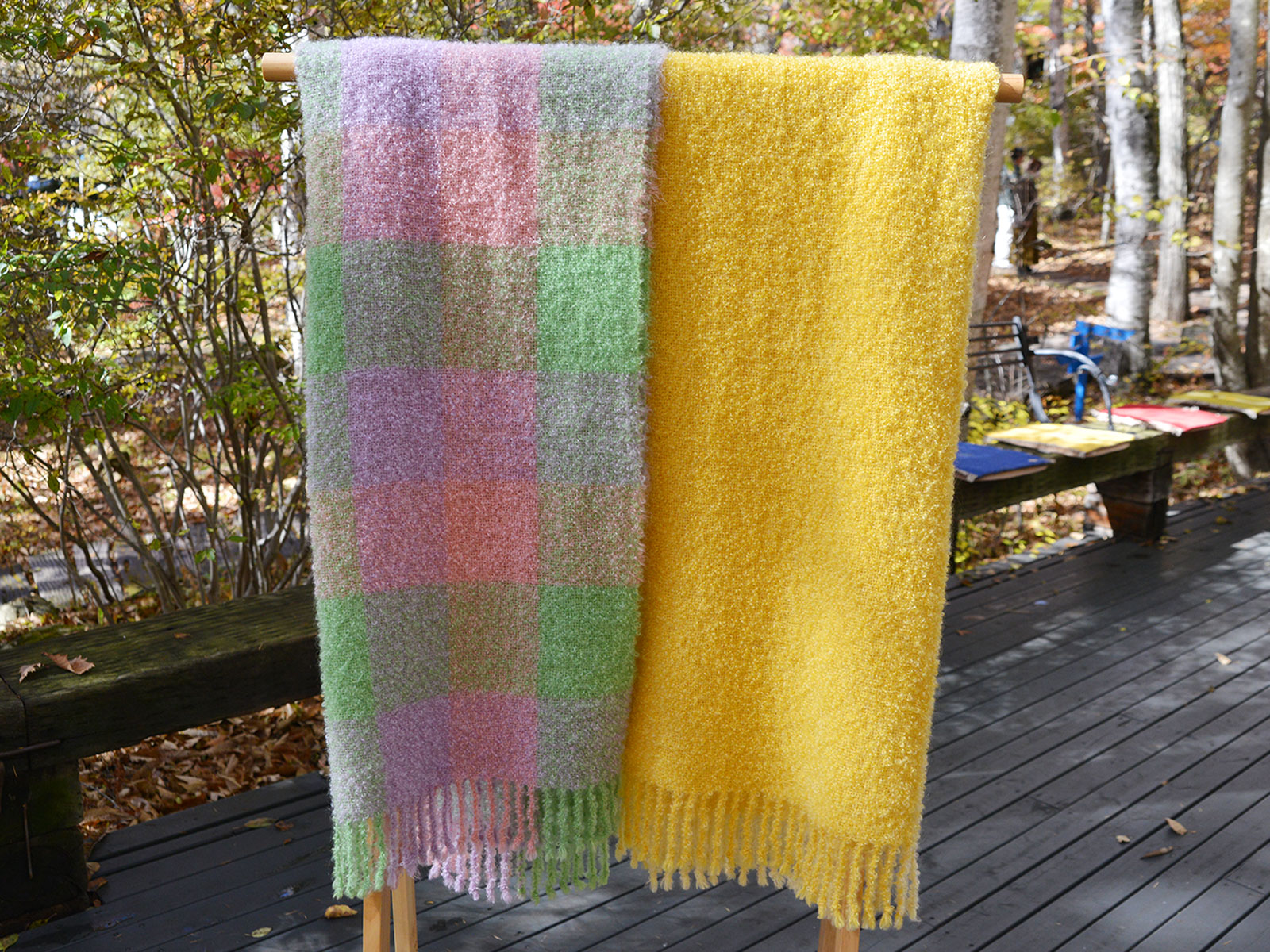 ルイユ織(麻の経糸にウールなどの毛足の長い糸を結びつけた織り)の作品はエリナさんの新作。