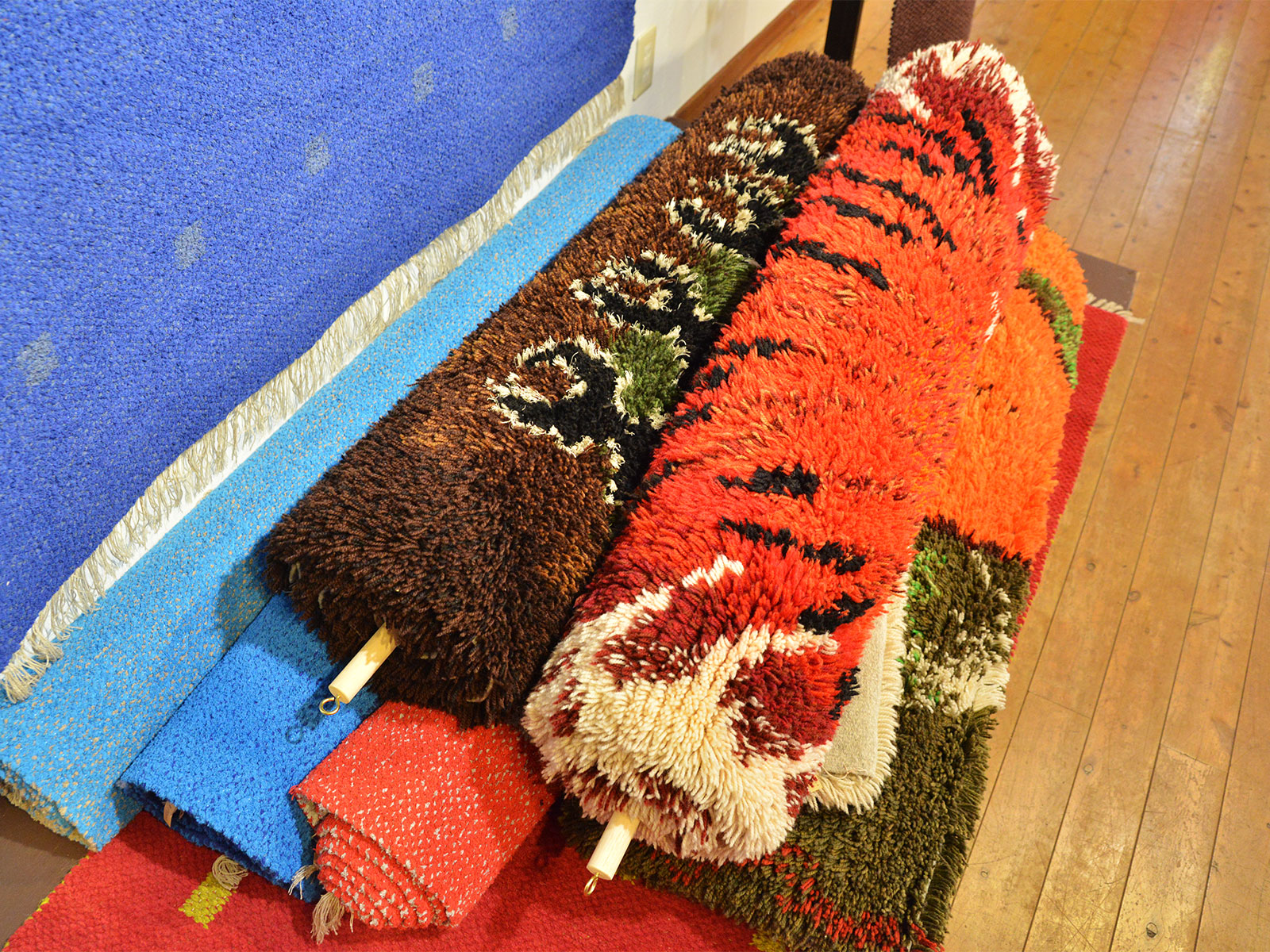 50年以上昔に織り上げられた緞通(だんつう)織や、ラーヌ織。