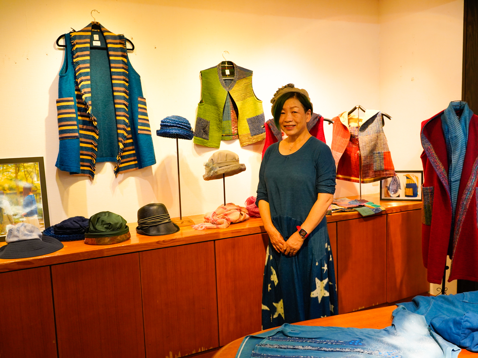 高原の爽やかな空気に包まれ、森のギャラリーでは裂き織と染めの作家 棚機津女さんの「八ヶ岳ブルーのTシャツ展」が始まりました。