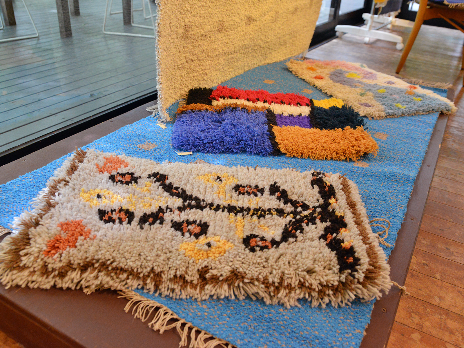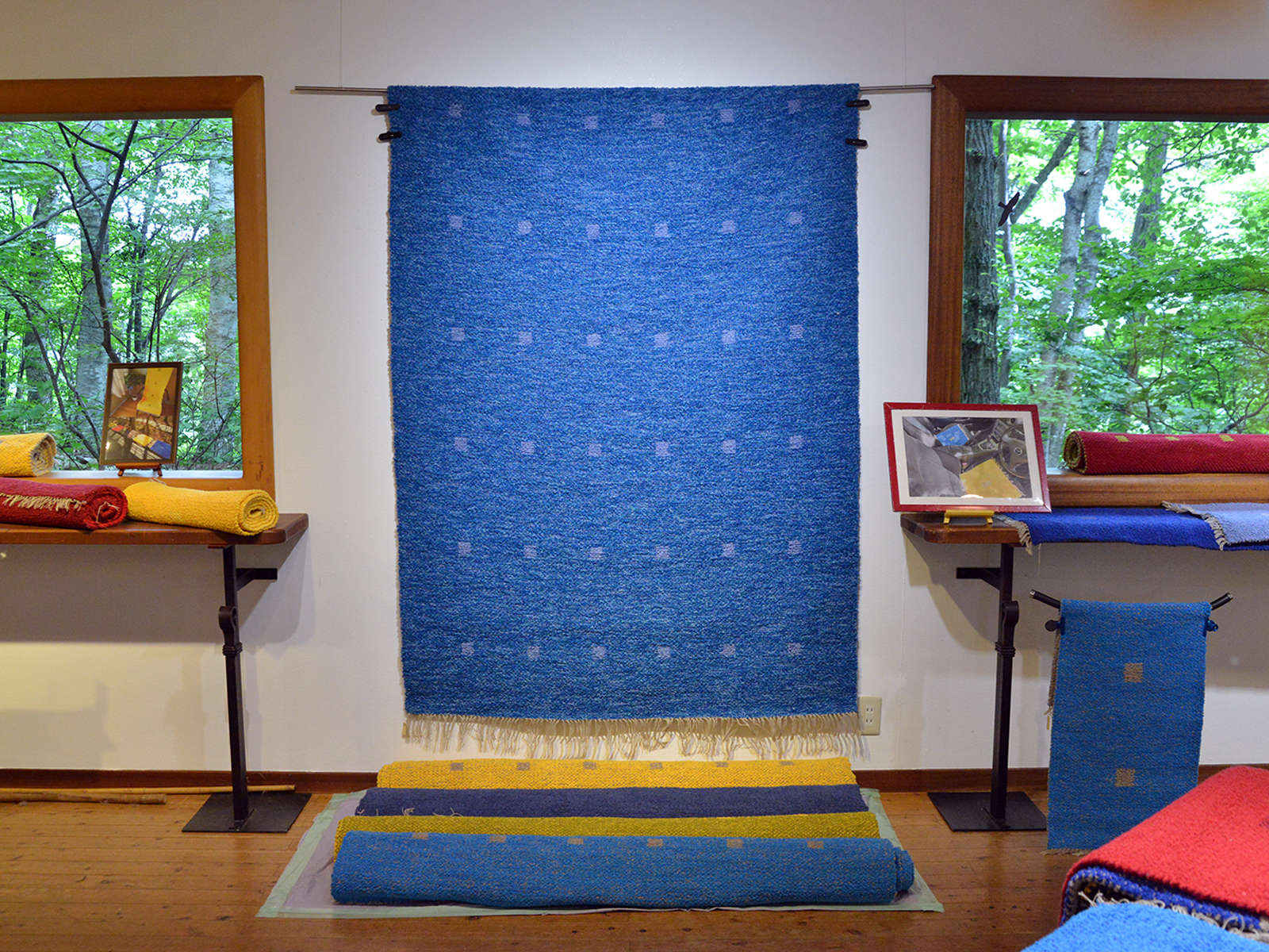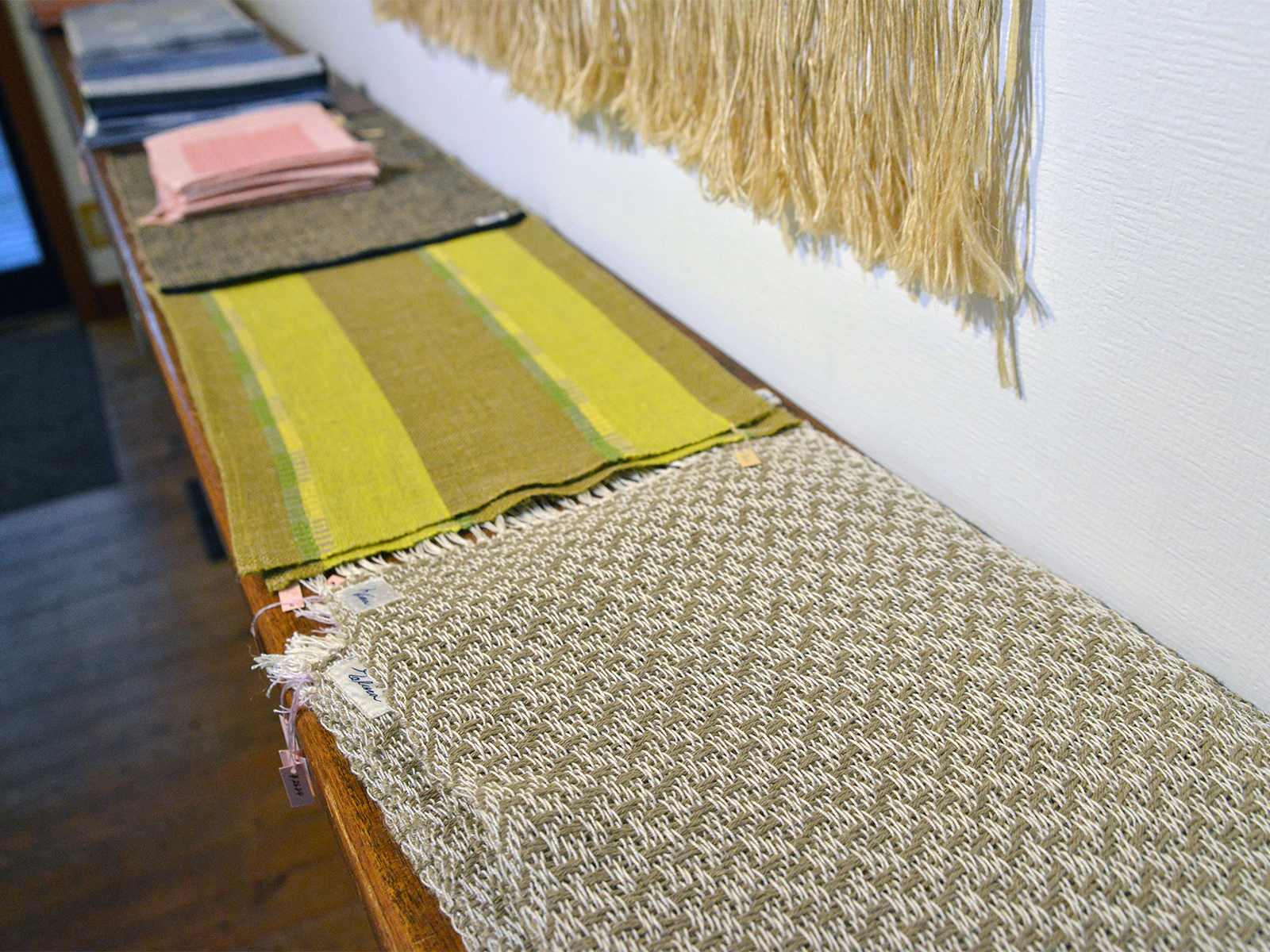 他にも、フィンランドの原種に近い羊・フィンシープのウール製のマットや、薄く削がれたひのきのカンナくずを使った、見た目も手触りも涼しげなタペストリーなど。
