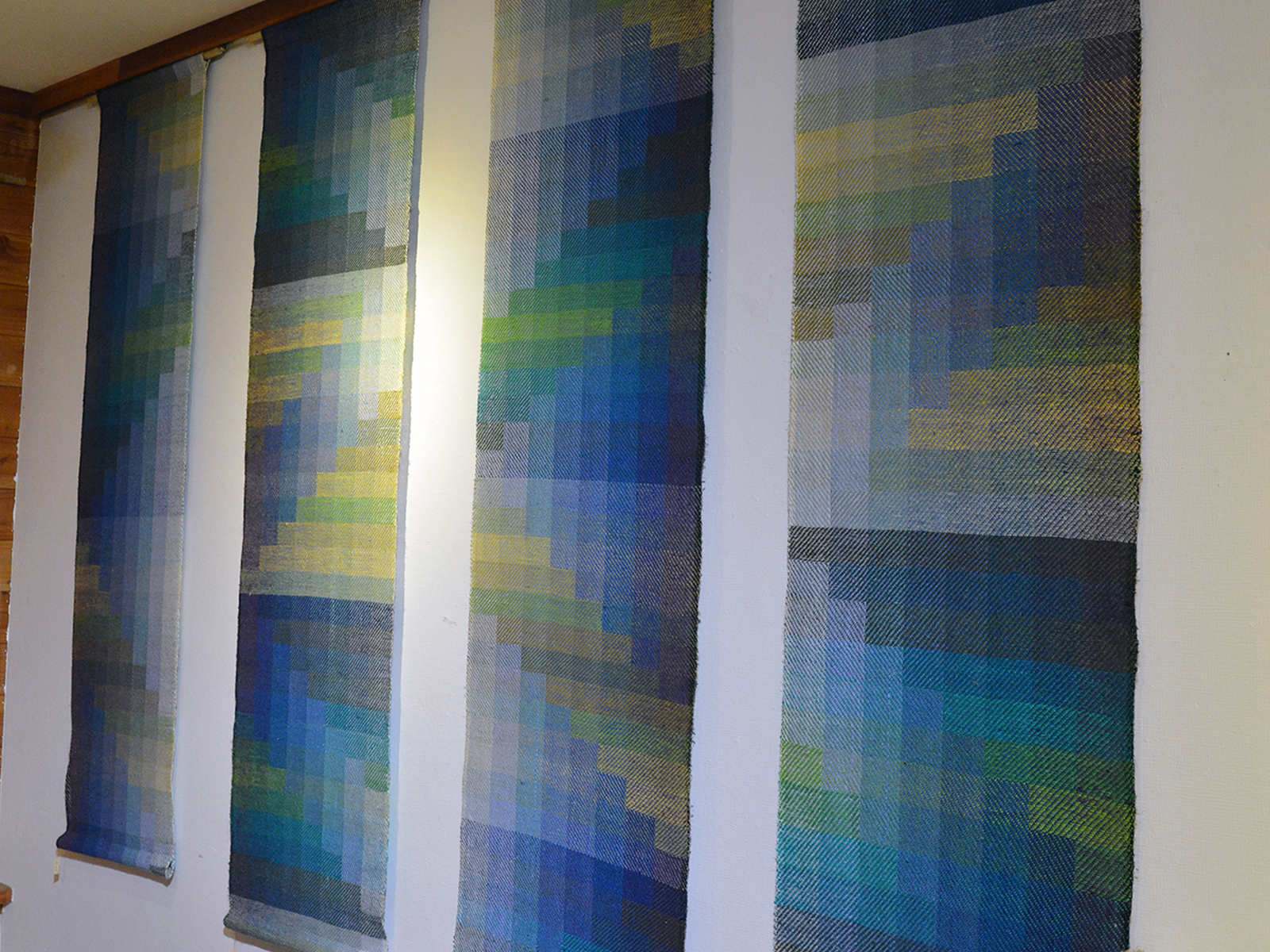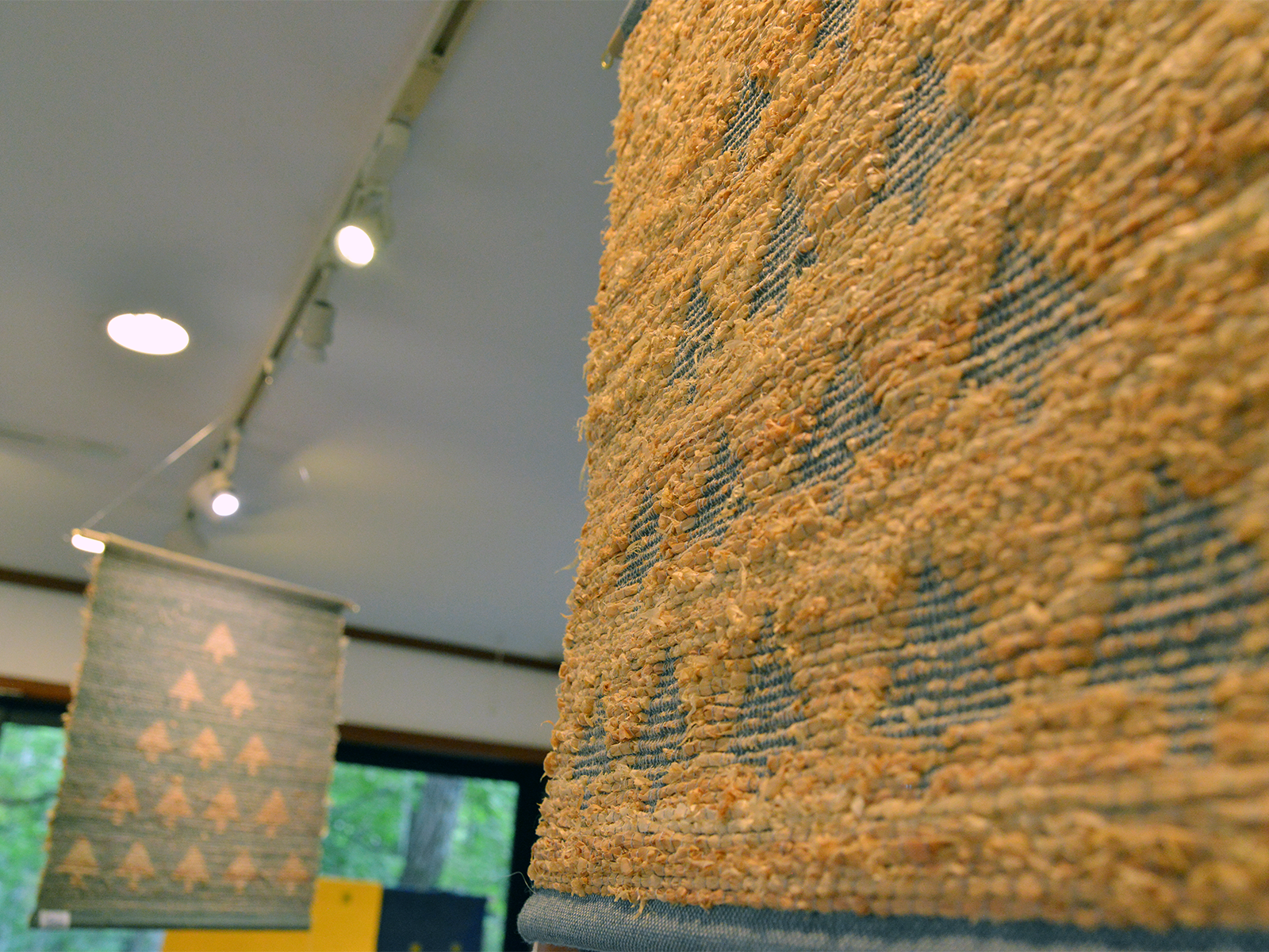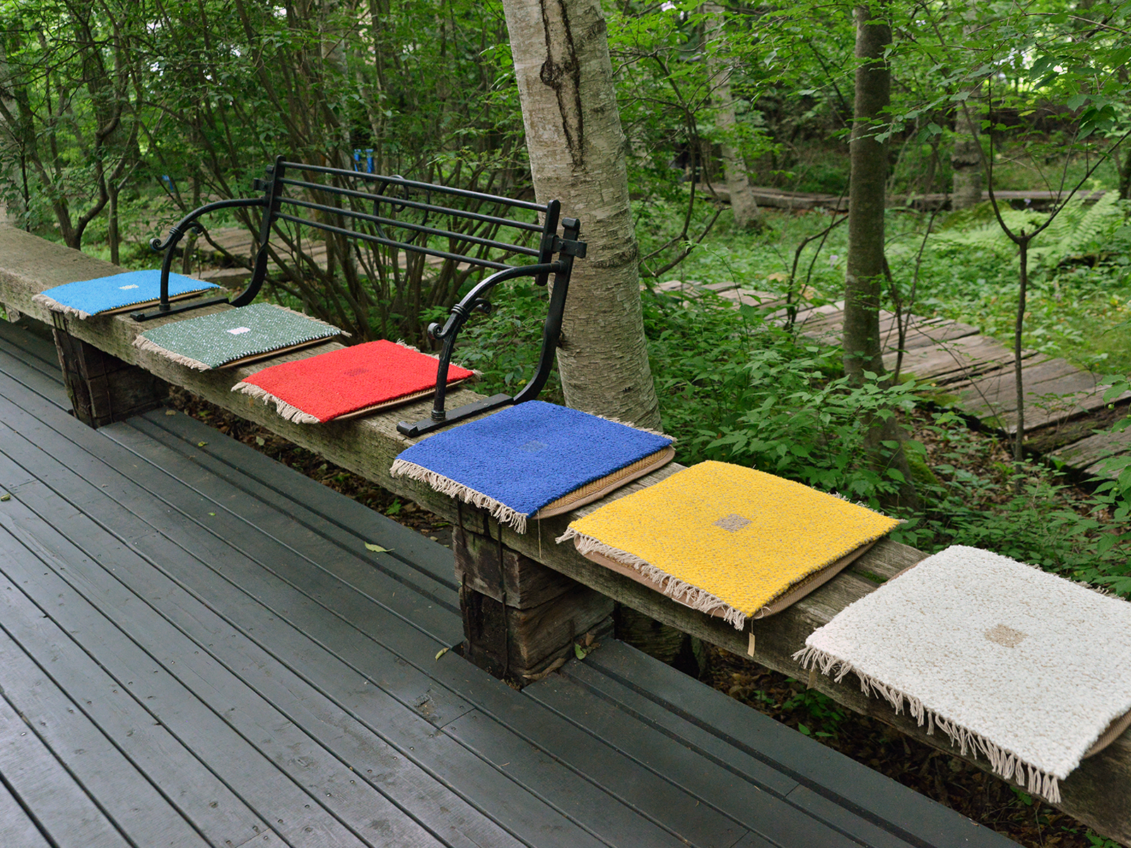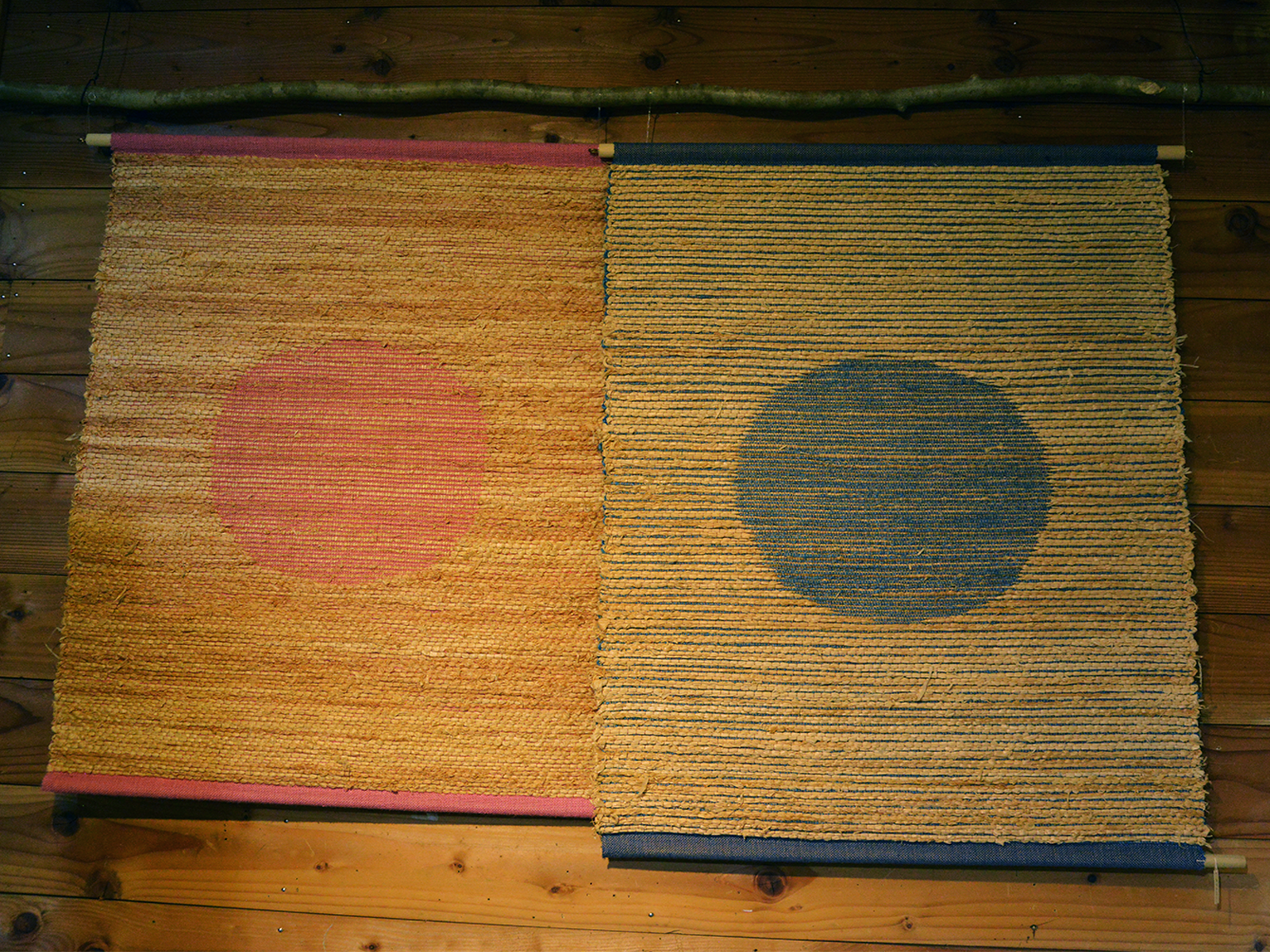 他にも、フィンランドの原種に近い羊・フィンシープのウール製のマットや、薄く削がれたひのきのカンナくずを使った、見た目も手触りも涼しげなタペストリーなど。