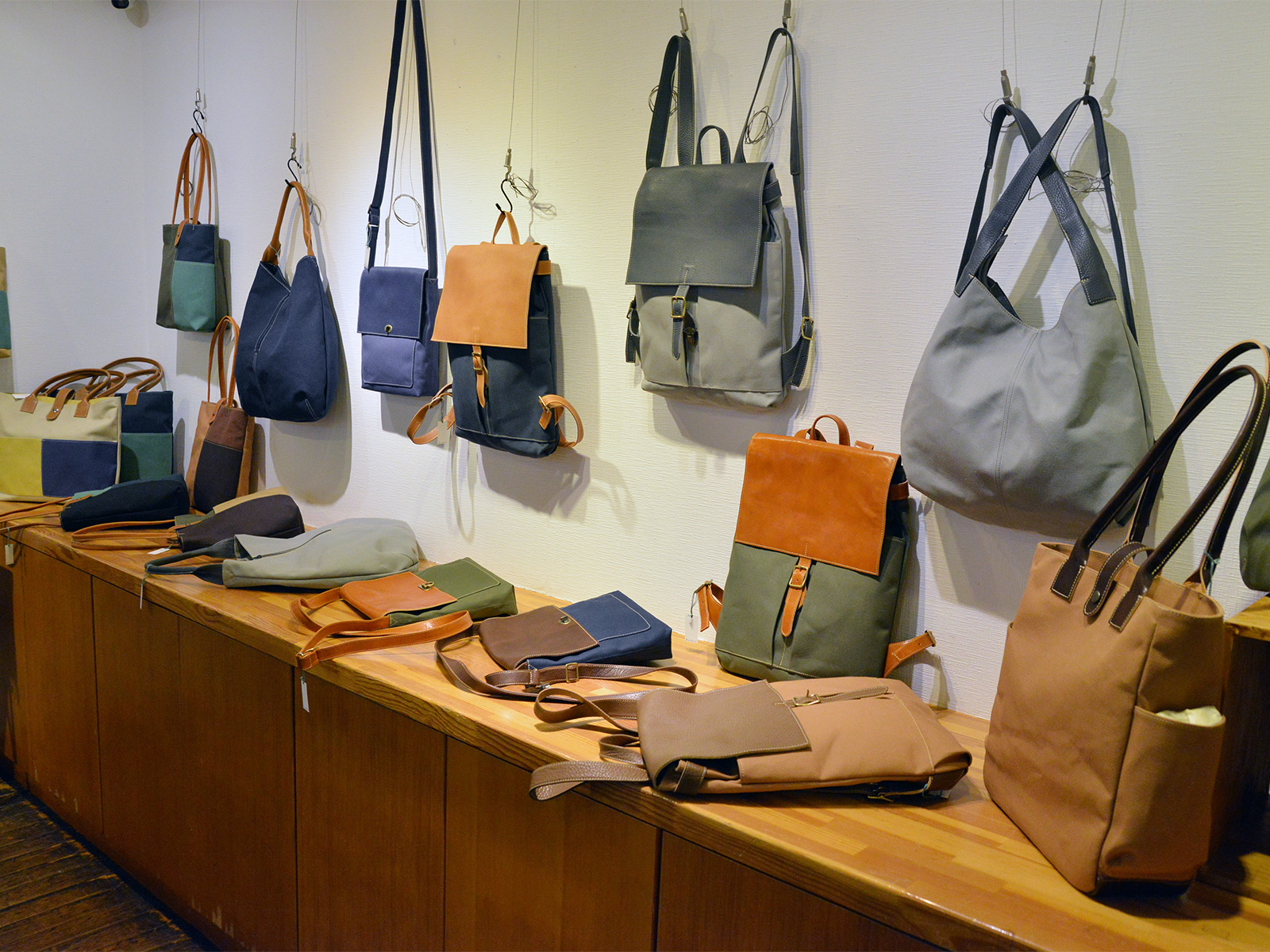 ヨーロッパ、日本の革を中心に、革と帆布のコンビネーションの鞄もあります。
