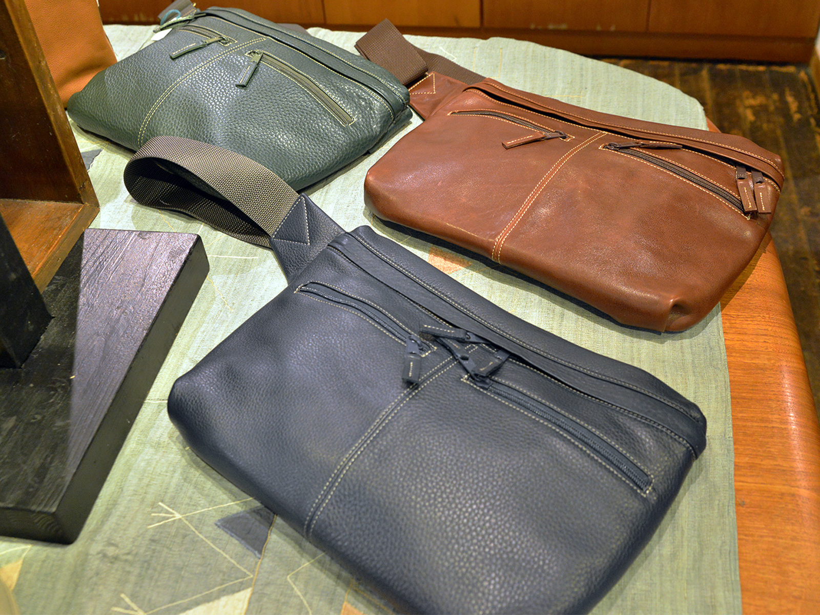 ギャラリー常設販売でもファンの多い林さんの鞄は、柔らかくしなやか。