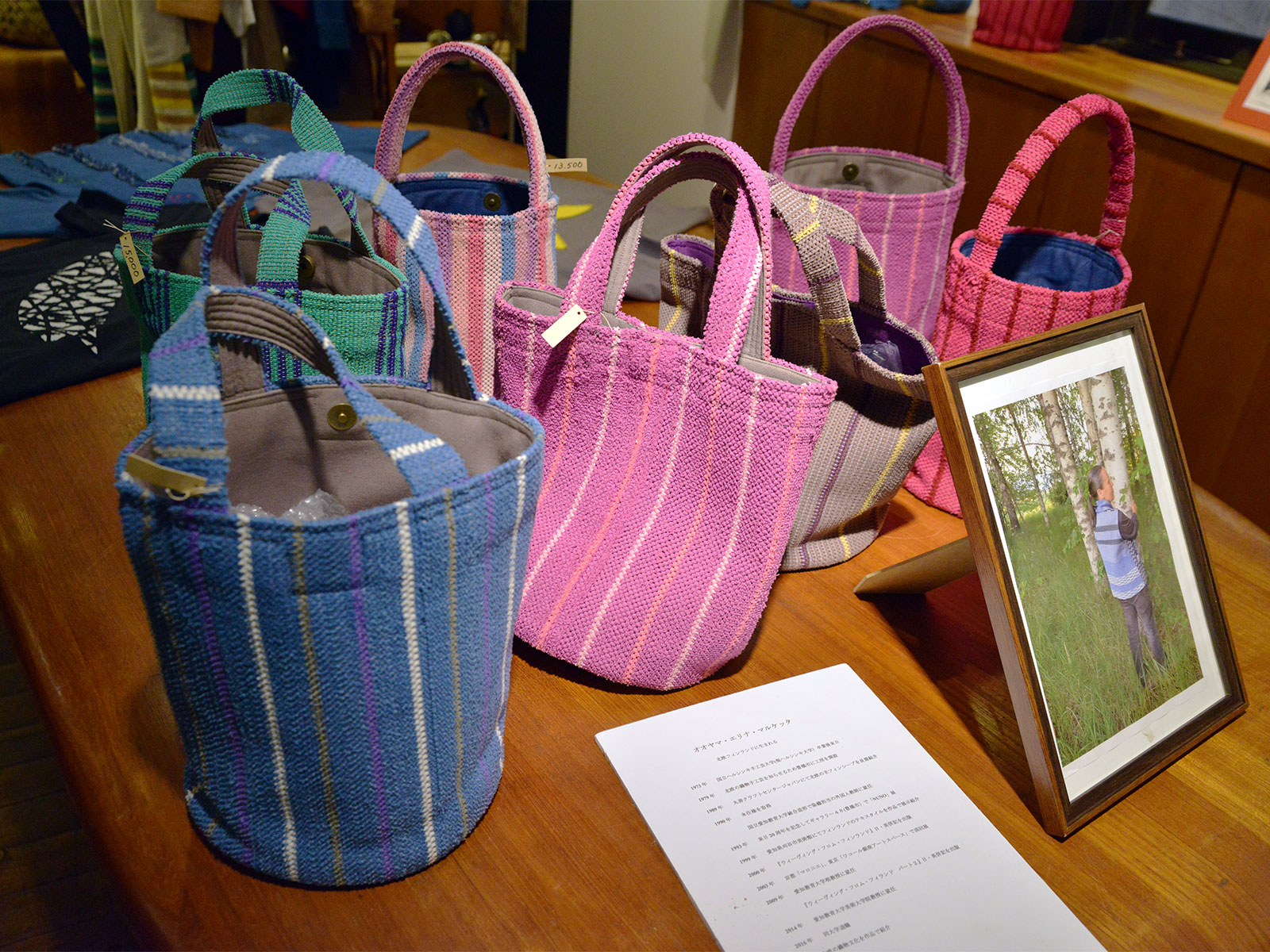 フィンランディアとのコラボ生地(ポッパナ織り)での円筒型バッグなど、新作もたっぷり!