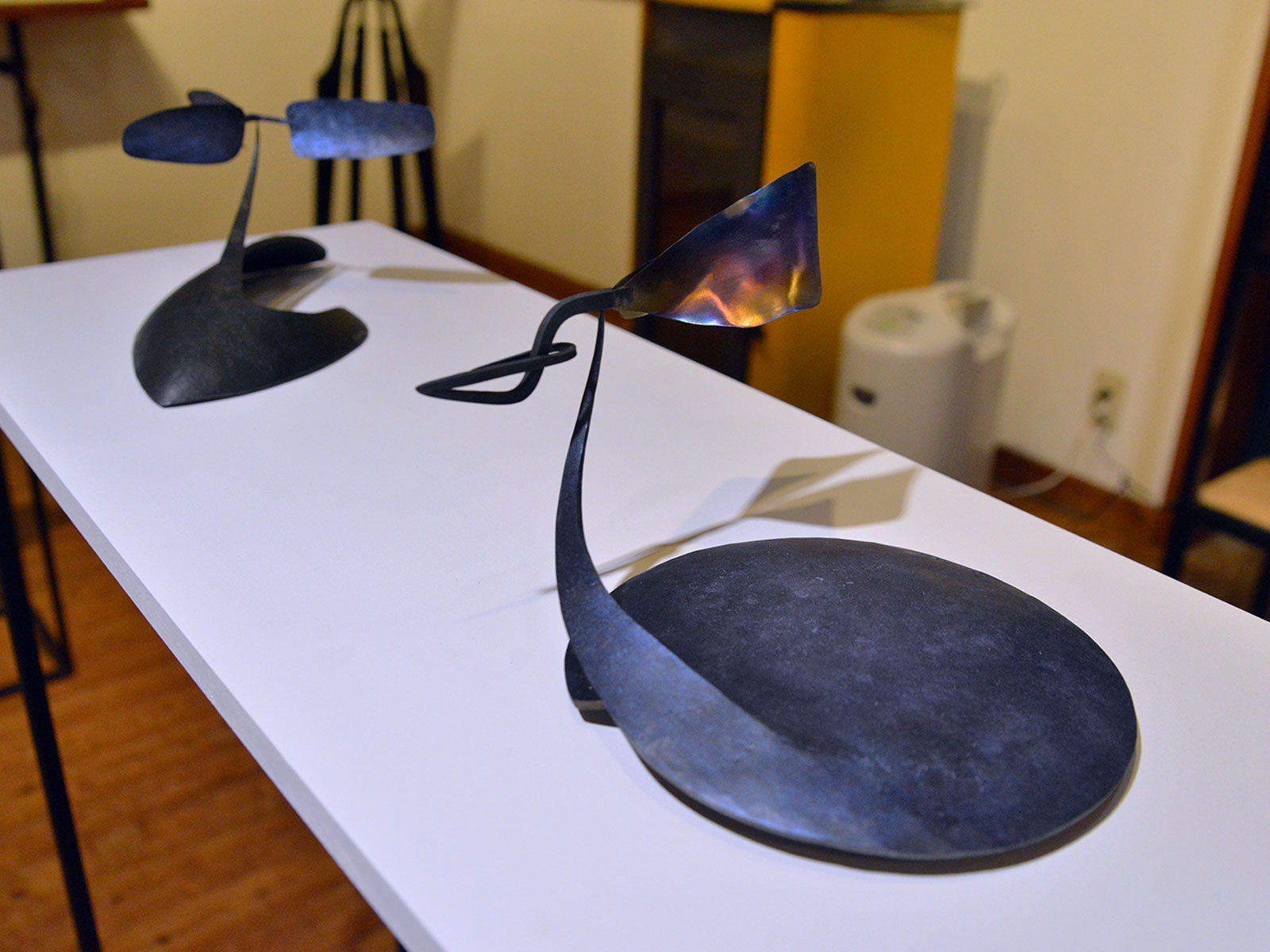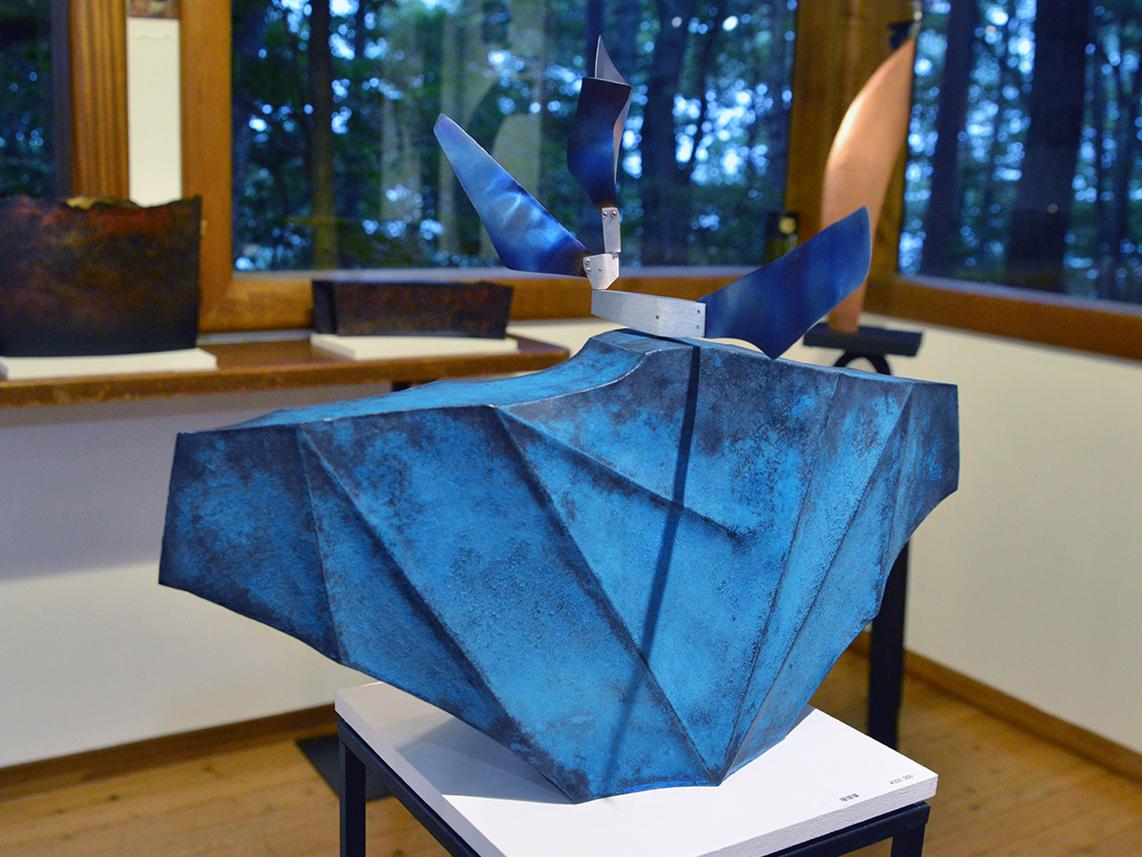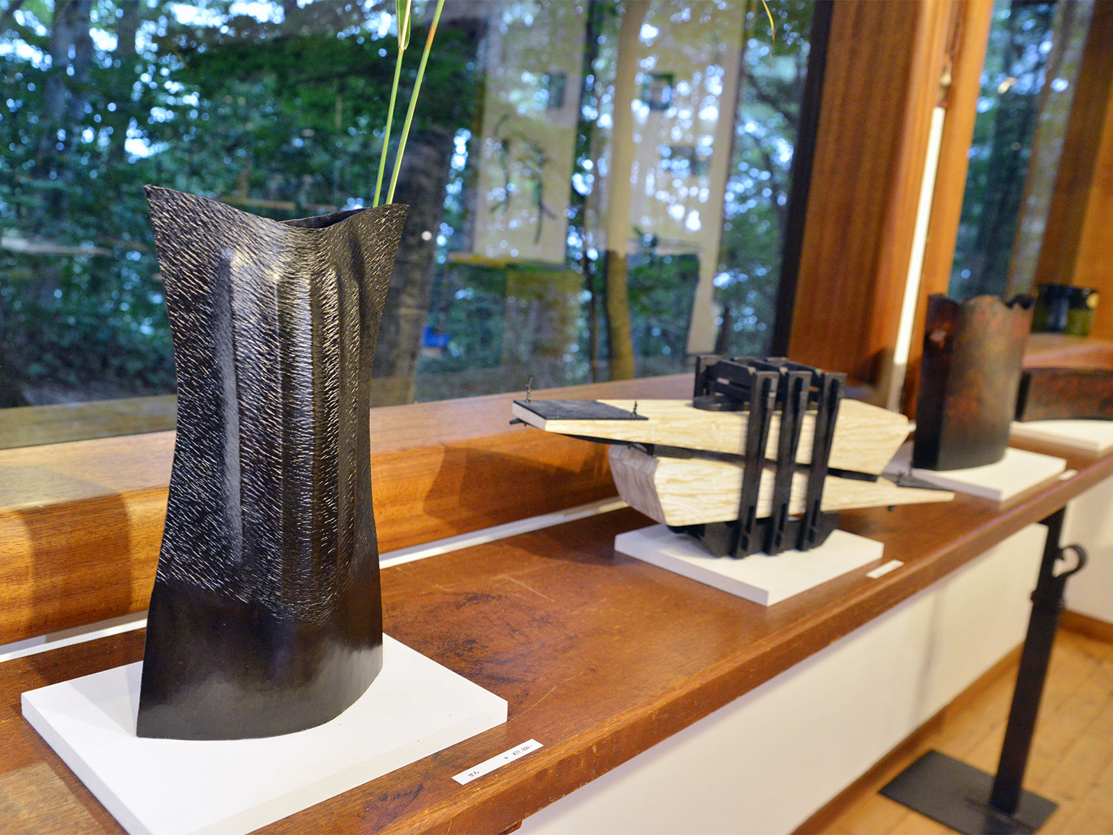 様々な金属(銅、鉄、ステンレス、チタン、金、銀、錫…)に、時には木材、漆も併せて作り上げられる作品たち。