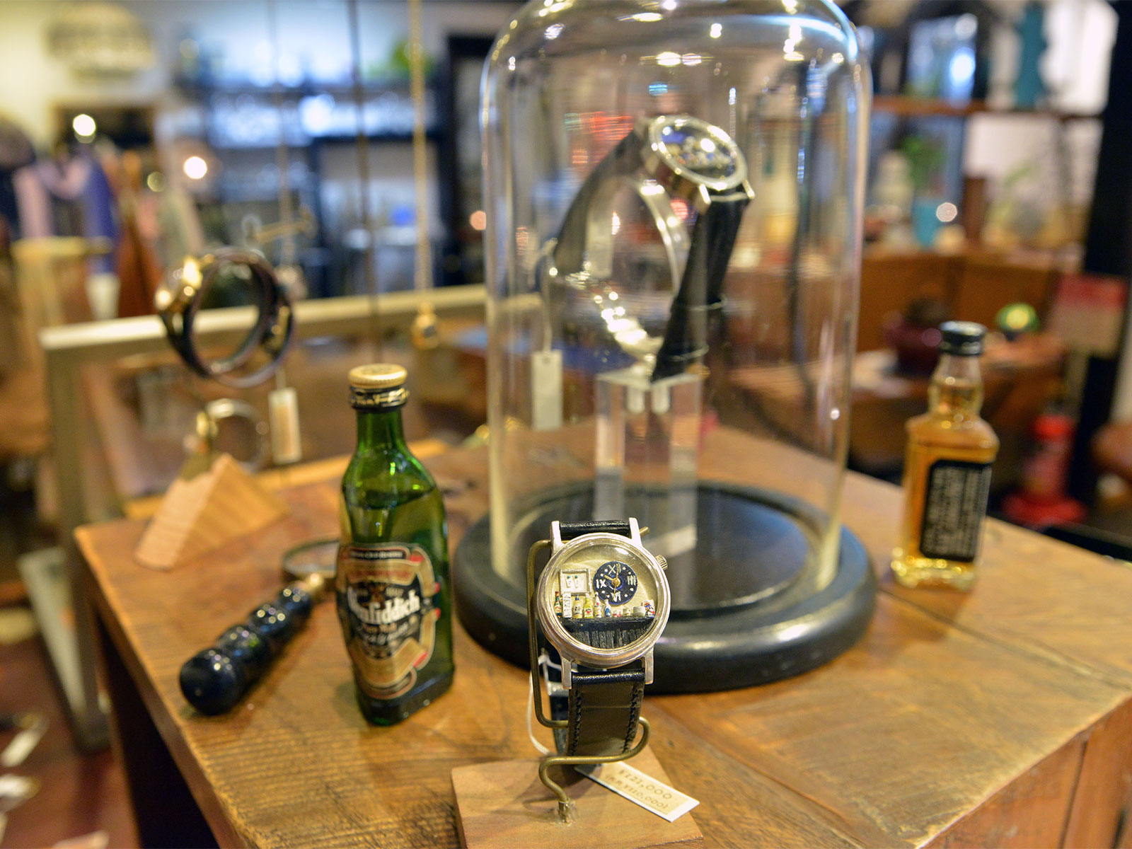 盤面に再現された小さなバー、女性的な愛らしい繊細なデザインから、海や宇宙を思わせる幻想的なデザイン、スチームパンク風のハードなデザインまで、増田さんの時計の世界観は多岐に渡ります。