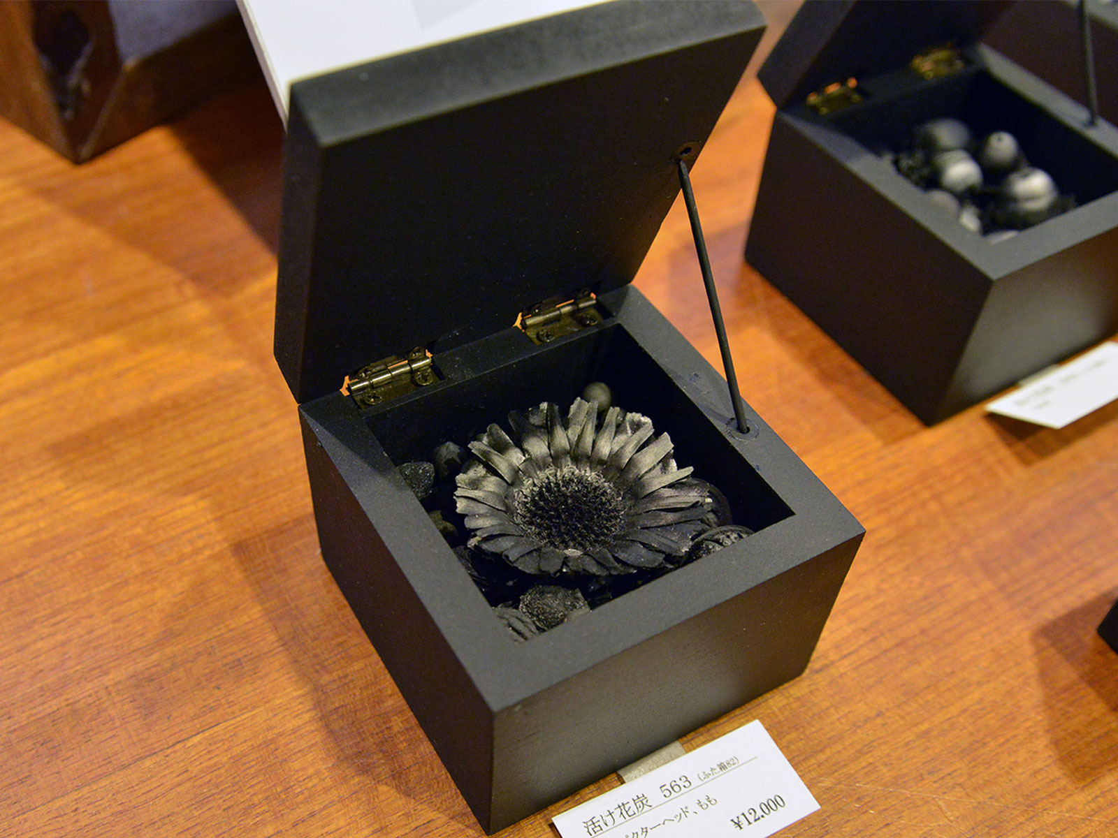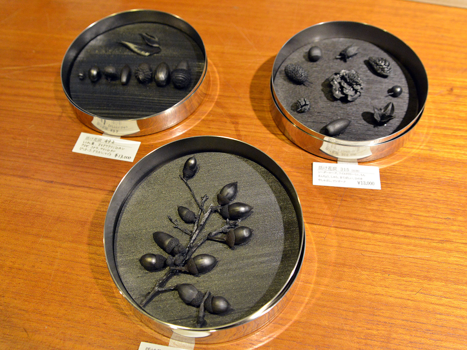 生命の力強さと儚さが炭の黒々とした美に閉じられて、半永久的な作品となりました。