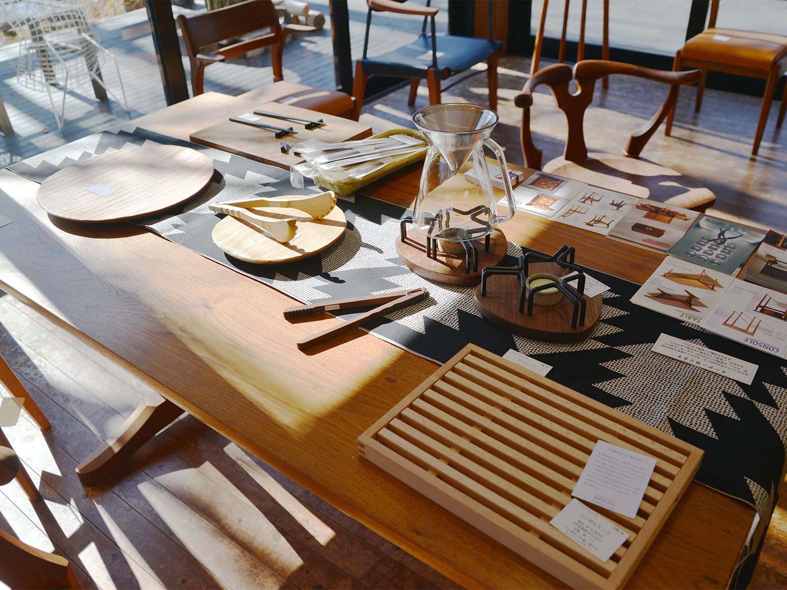 テーブル、椅子、ベンチ、シェルフ等の家具からカトラリー、まな板、時計、その他小物まで。