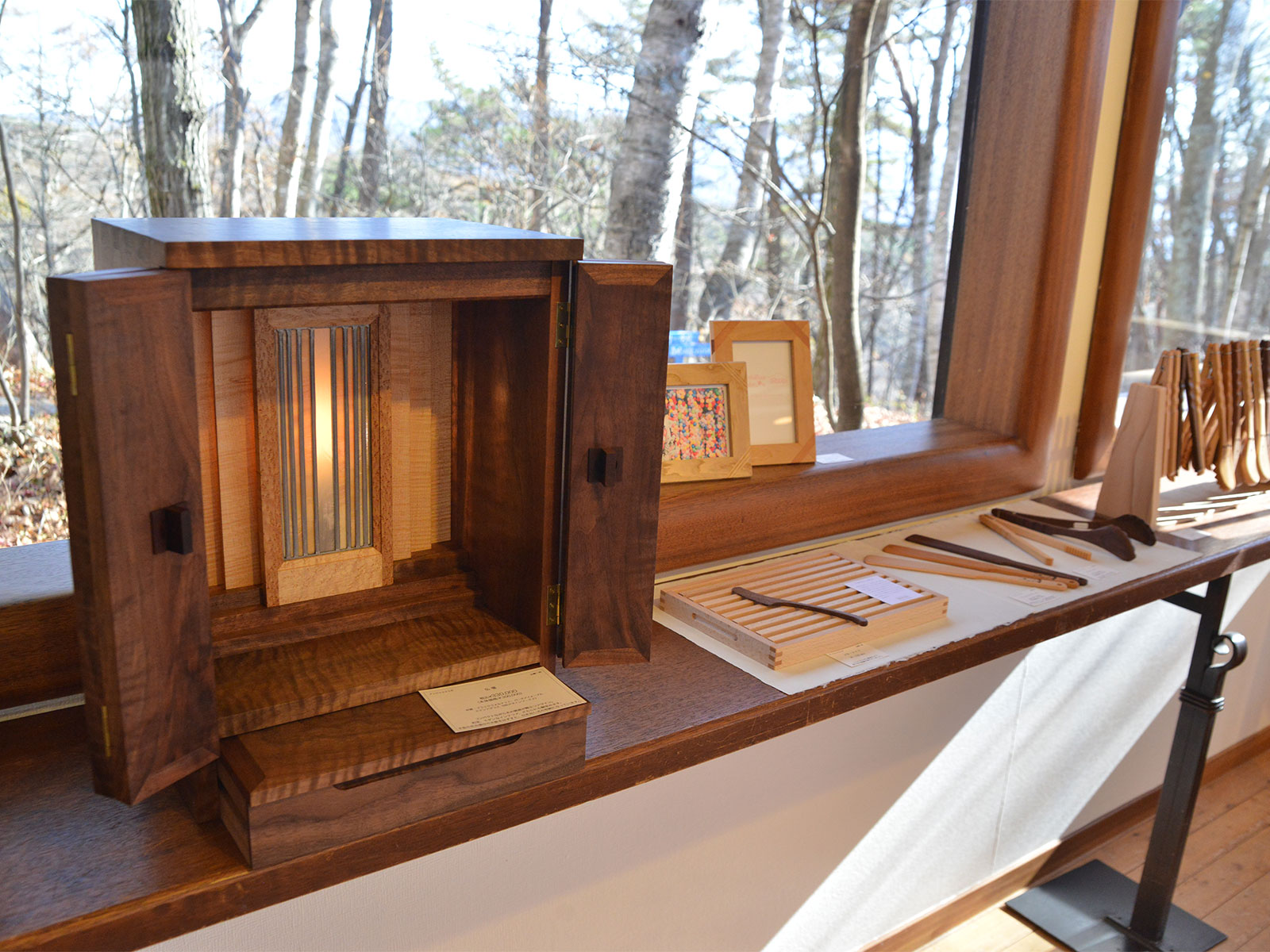 ギャラリーの常設でも人気のお仏壇は、ステンドグラス部分がギャラリーブース展で展示中の植井さんとのコラボ作品。