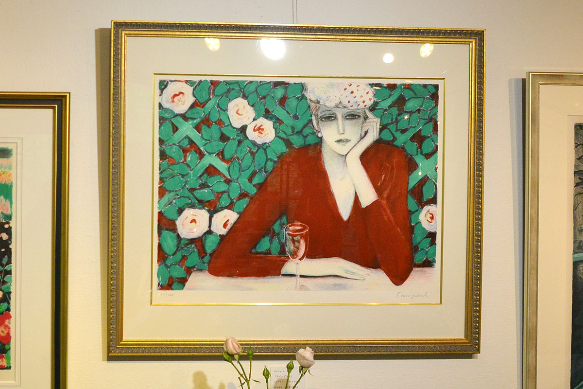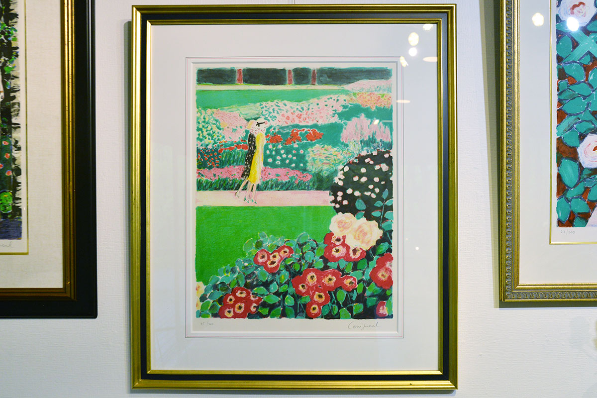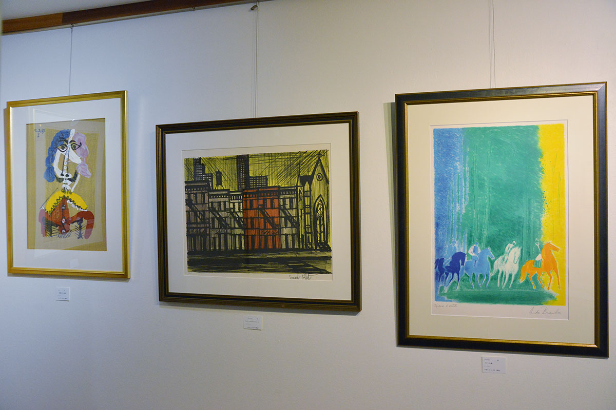 カシニョールのリトグラフの他、ピカソ、シャガール、藤田嗣治、ビュッフェ、ブラジリエの版画を展示販売。