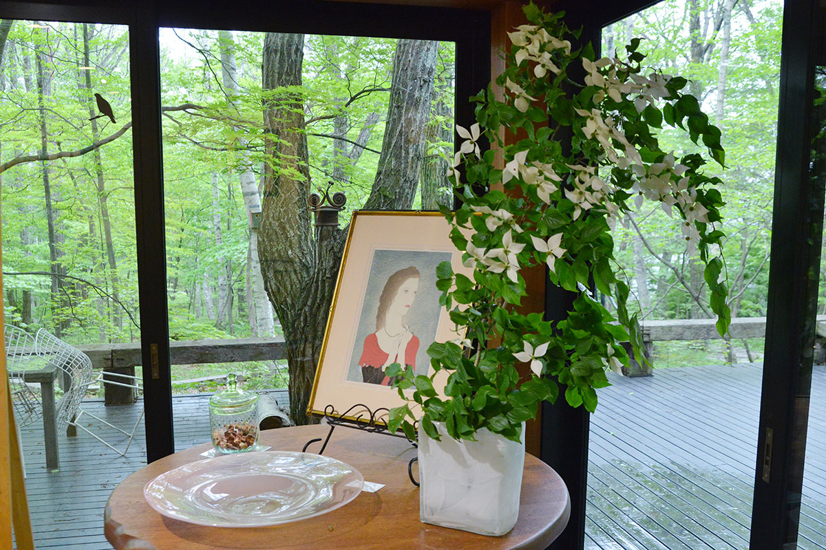 若々しい緑が鮮やかな森の中、夢見るような展示会場になりました。
