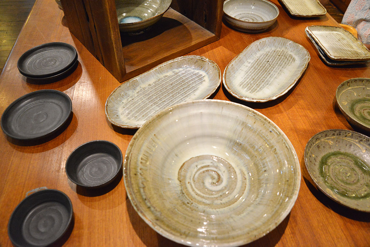 シンプルながら使い易さをしっかり考えられた丁度いい深さ、大きさの器が並びます。