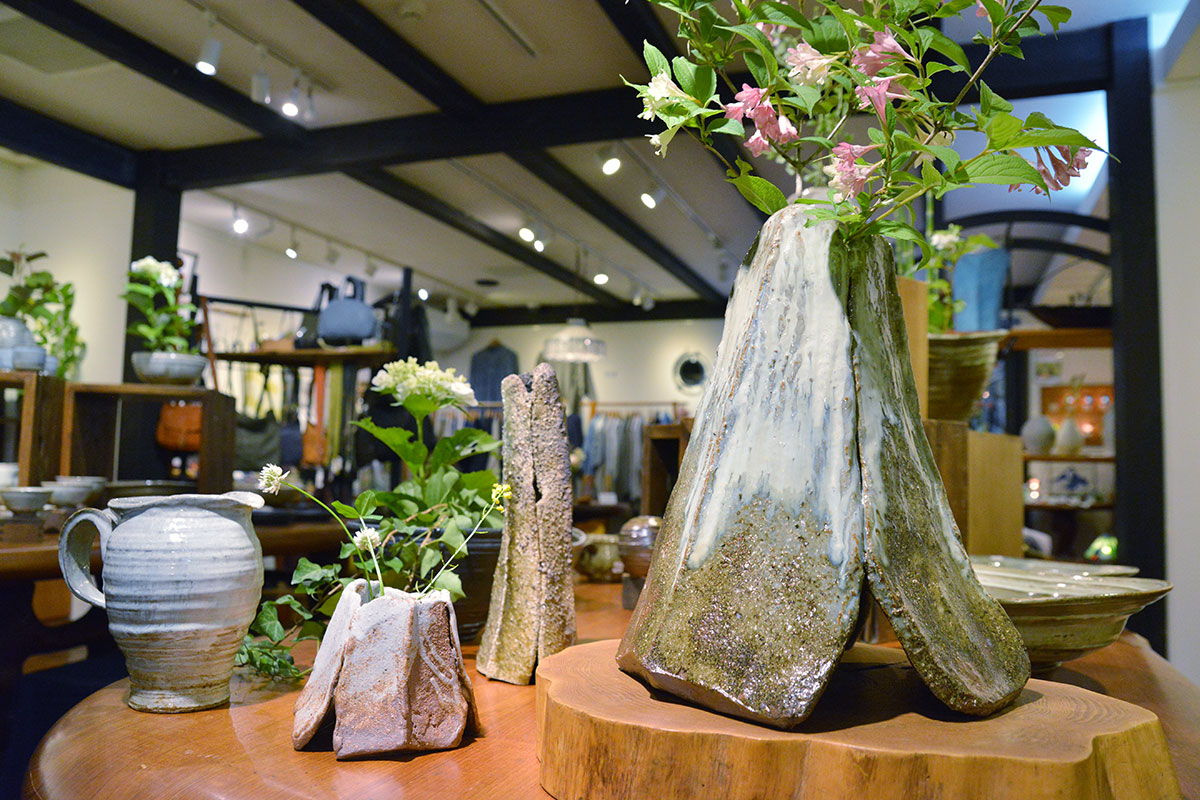 落ち着いた色味の中で、土と灰と石、自然素材が溶け合った深みが魅力的です。