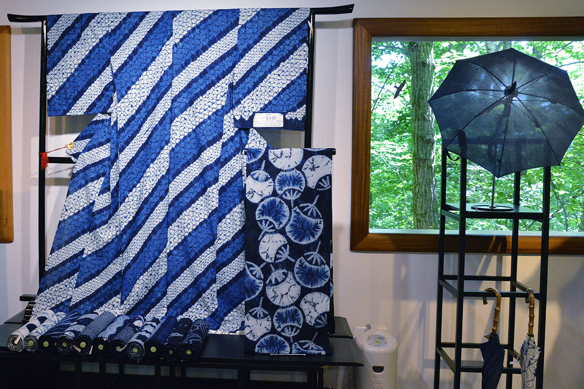 工房藍の館、下村透さんの「天然灰汁醗酵建」本藍染。