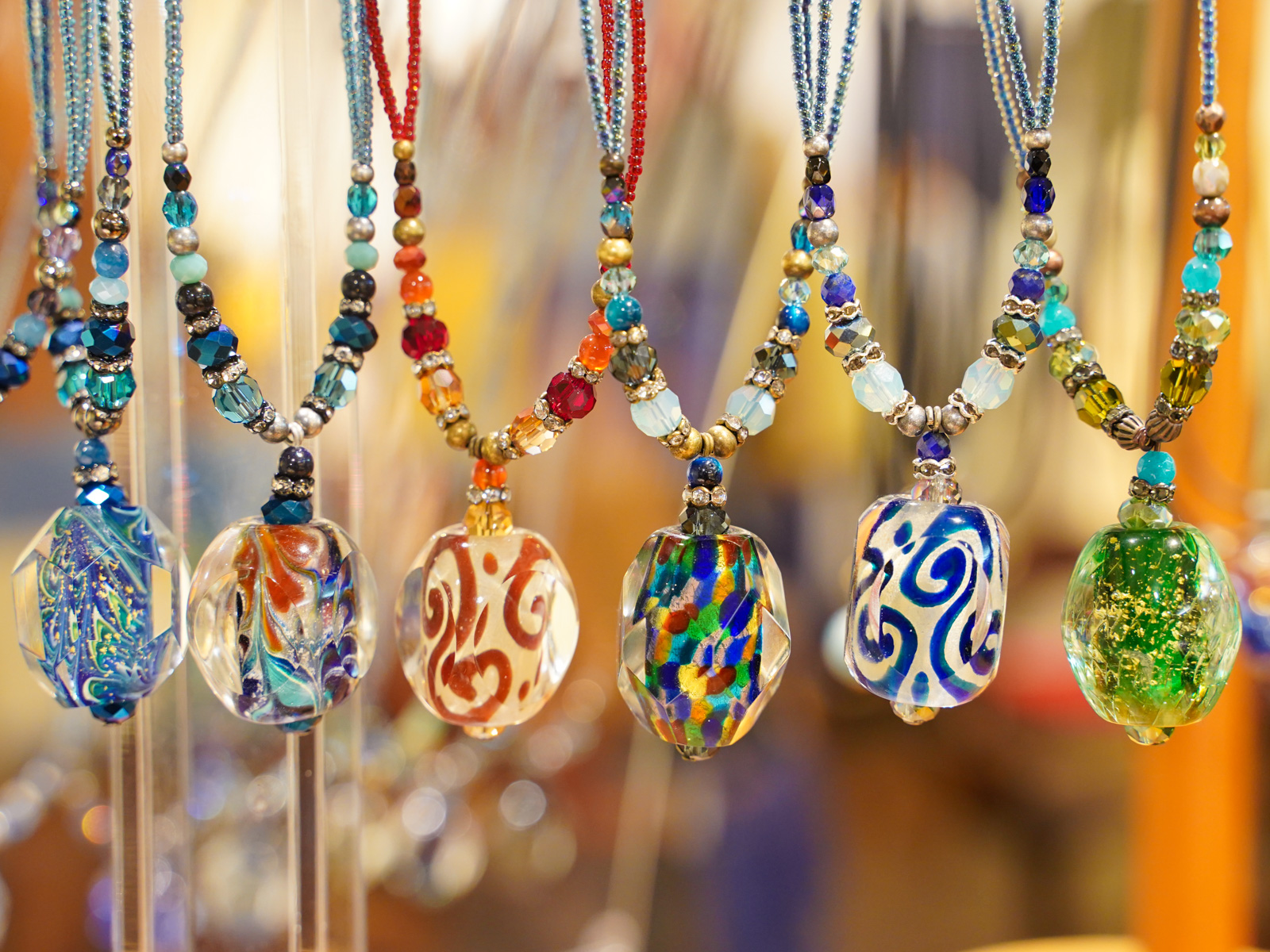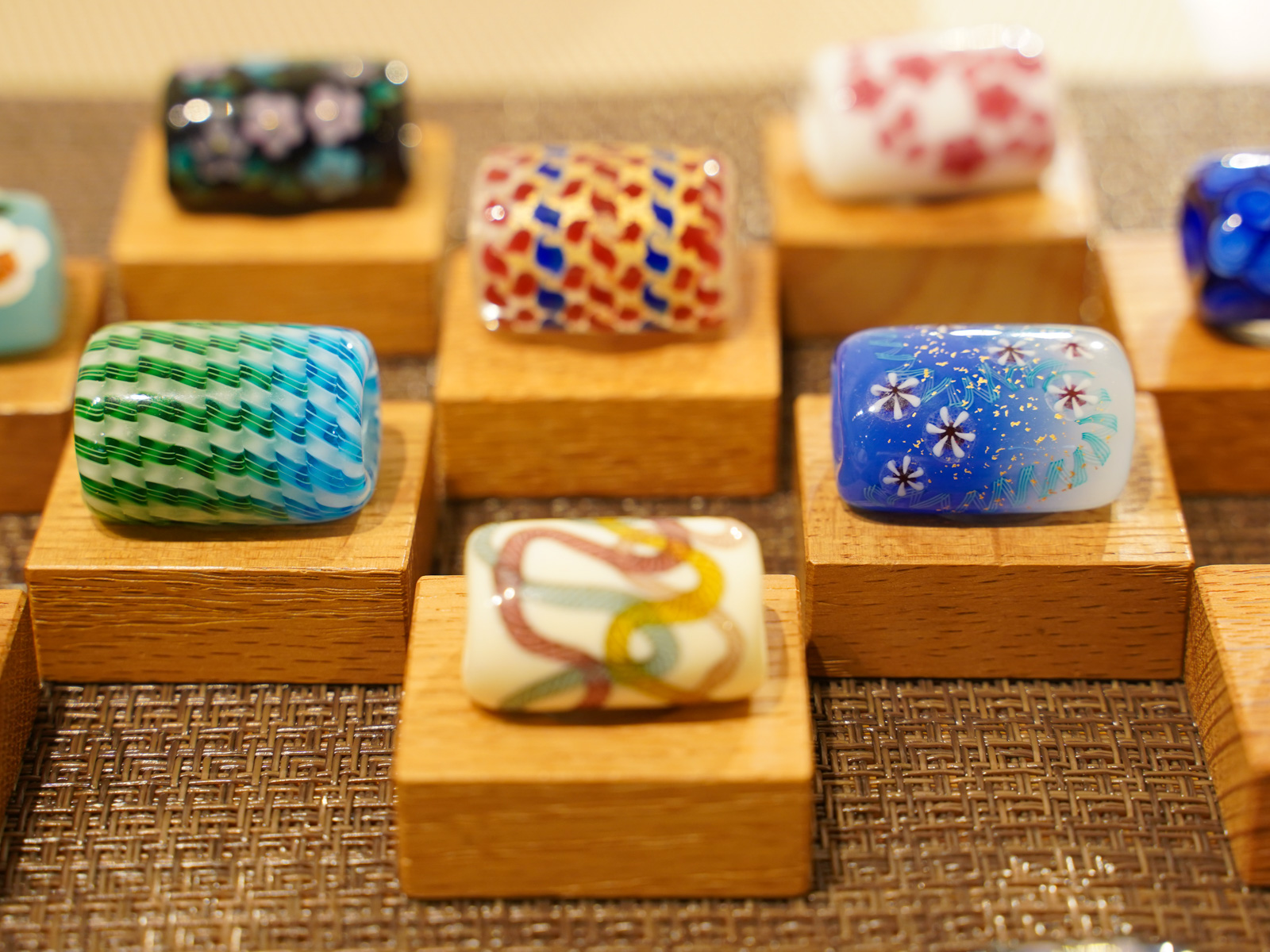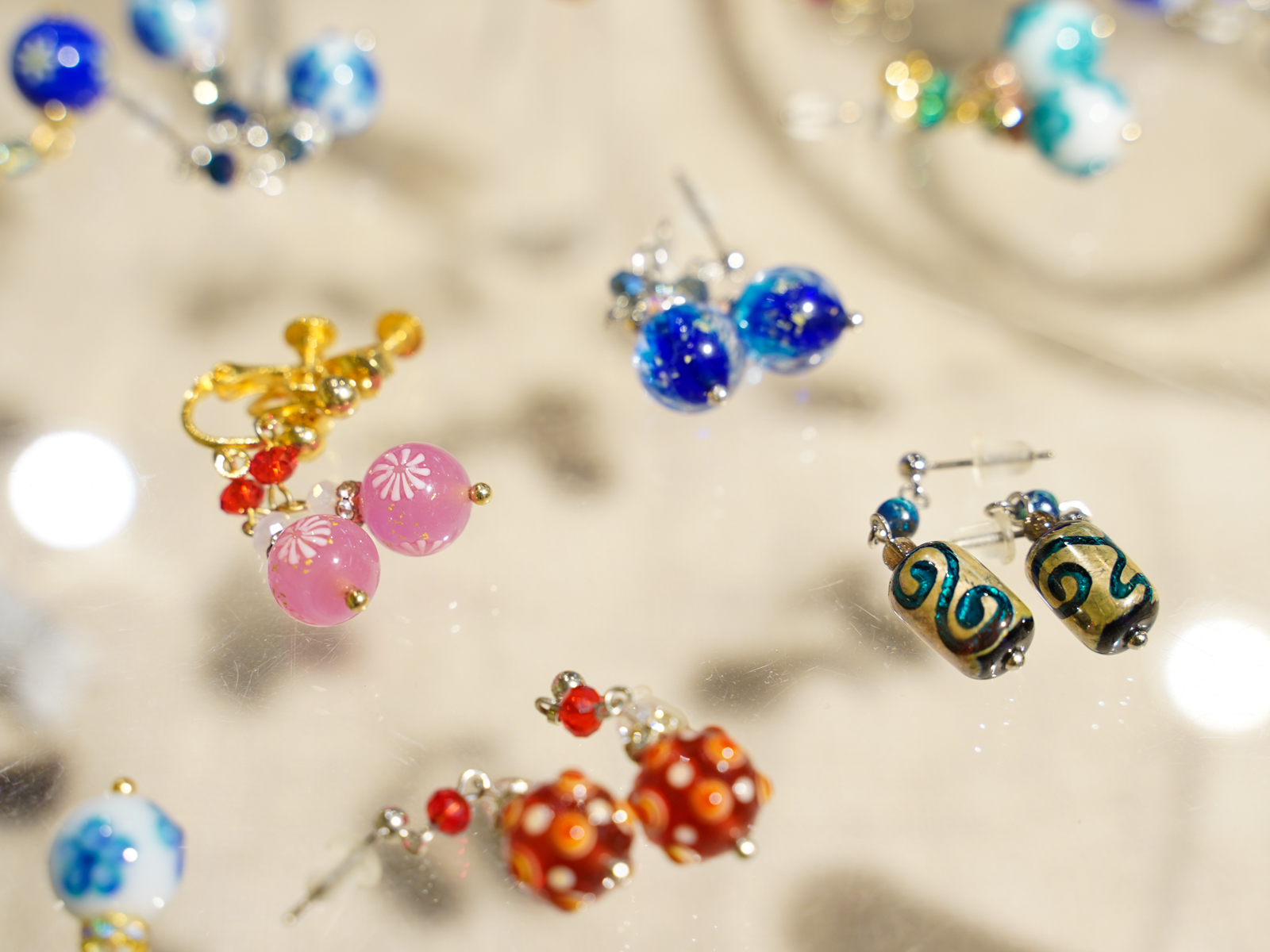 まずご紹介するのは、赤木さんの色とりどりで美しいトンボ玉の作品たち。