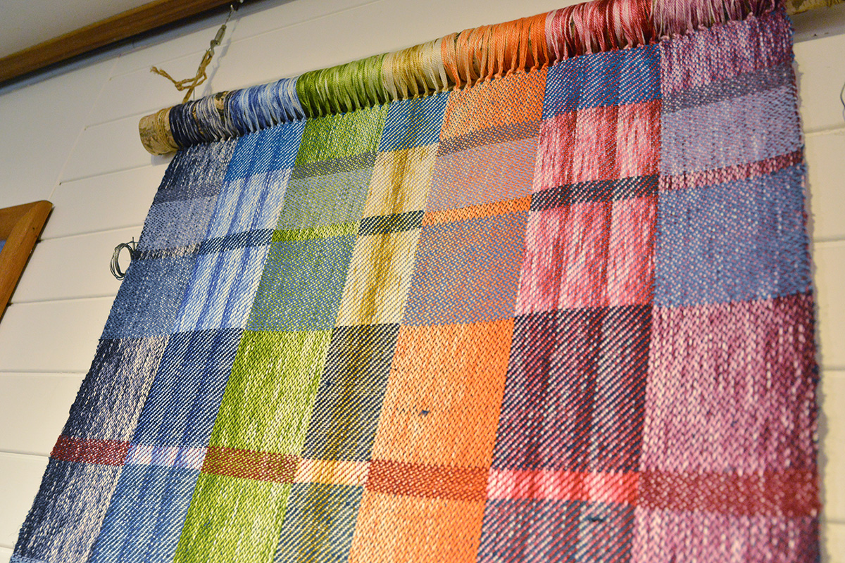 今期新作の手織りタペストリーは経糸も緯糸も様々な色を織り合わせて、爽やかで美しい仕上がりです。