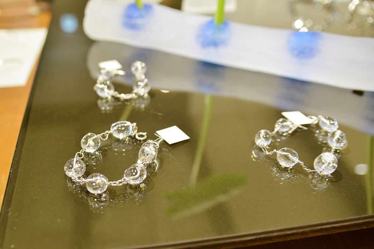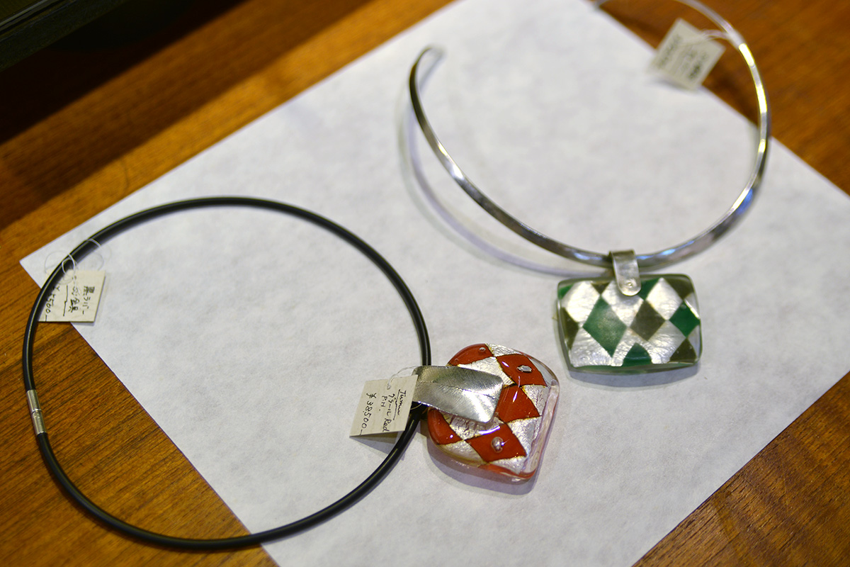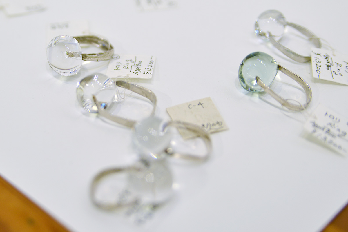 シルバーなど金属の部分は旦那様の保男さんが鍛金で制作され、ガラスの部分は奥様の仁芳子さんが制作されています。