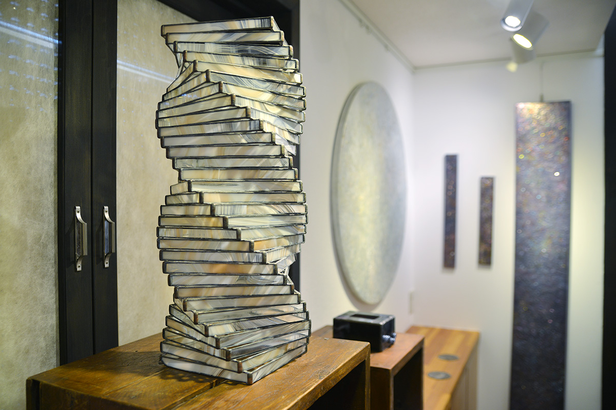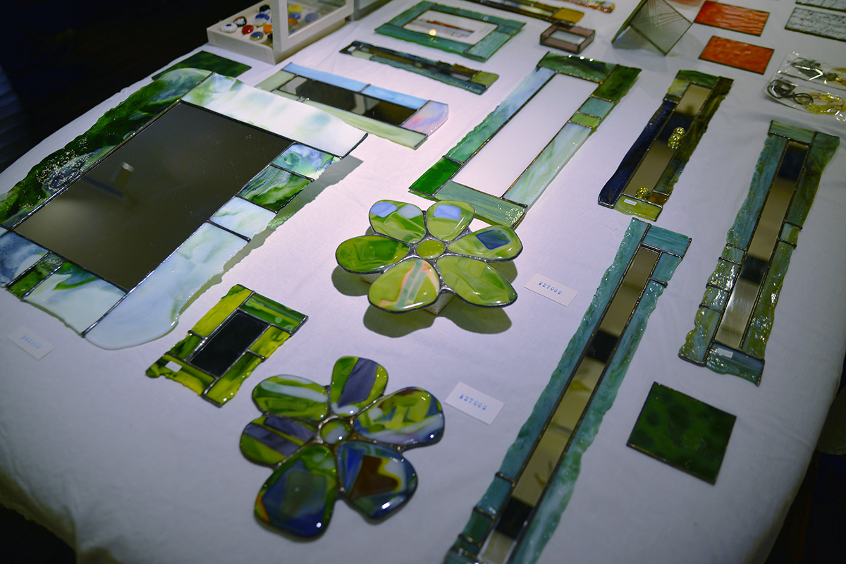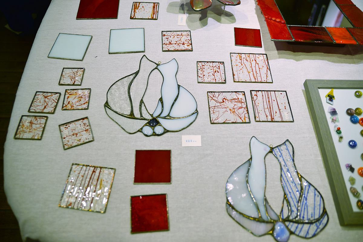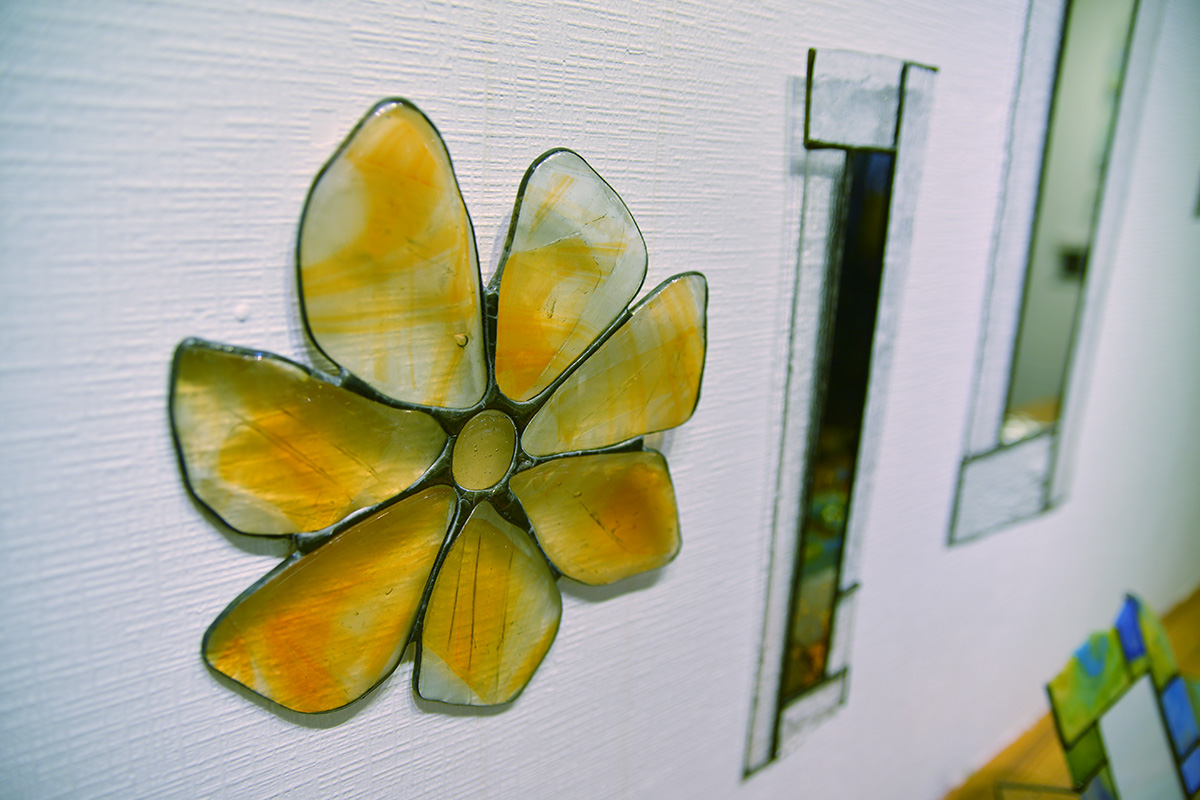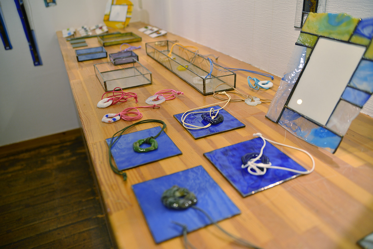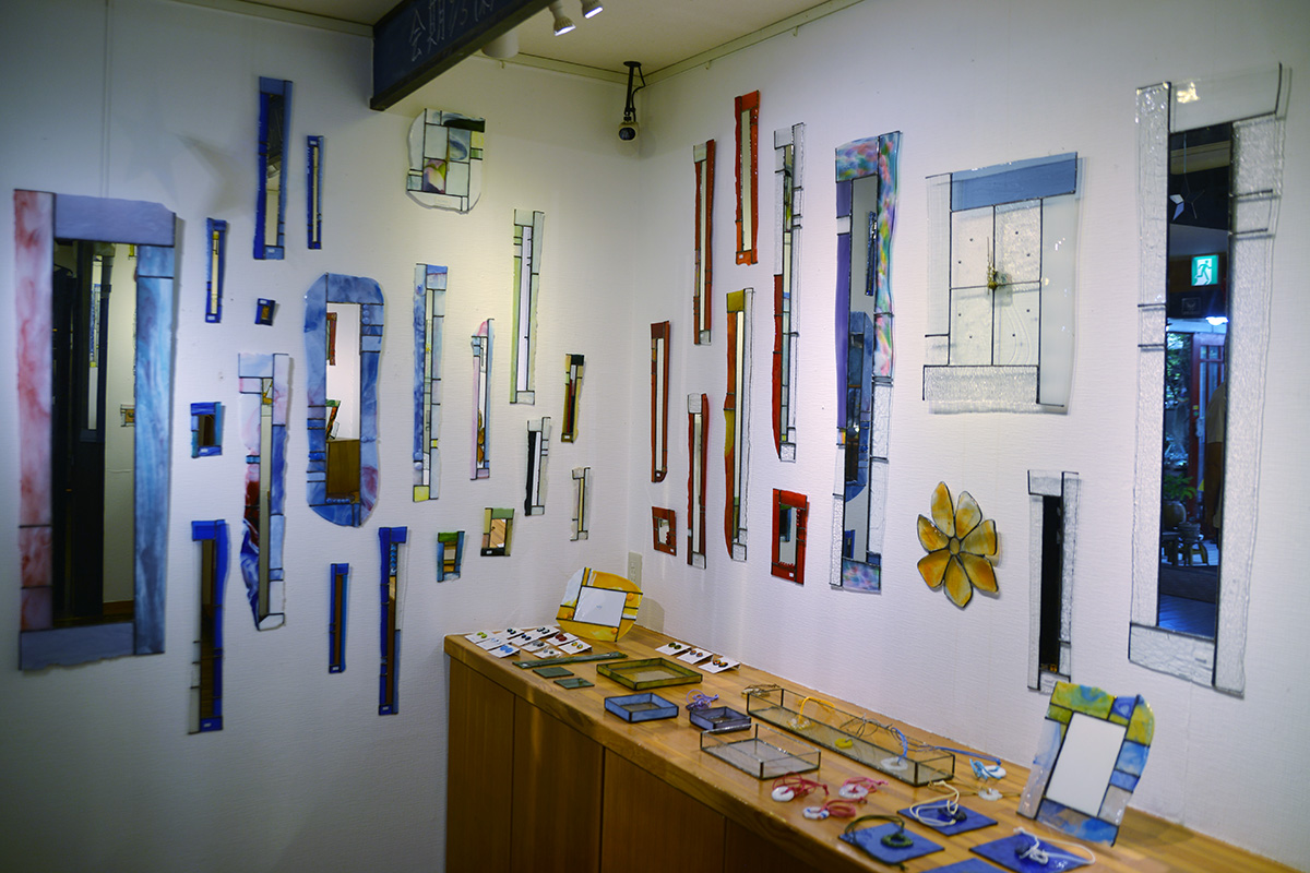 大判のパネルやミラーから、小箱やオーナメント、アクセサリーのような小物まで、カラフルな見所が目白押しの櫻井弓子さんのステンドグラス展。