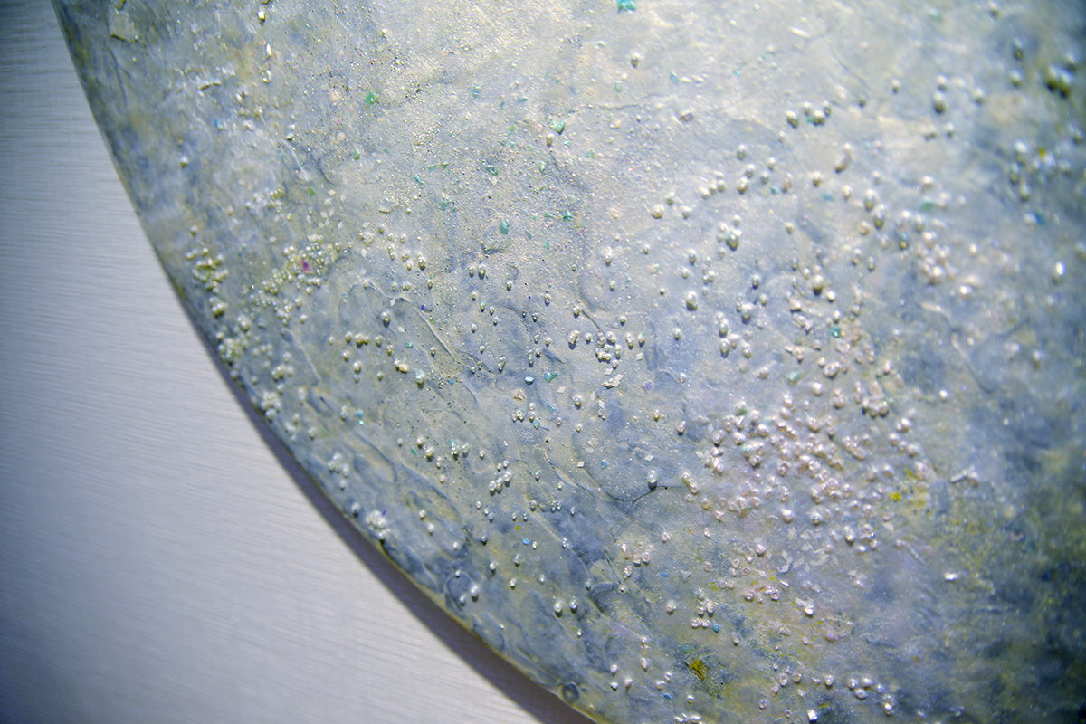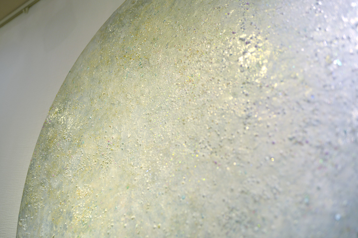 パールを散りばめ、塗り重ねられた色の厚みと、光による色合いの変化は朝もやの霧を眺めるような美しさ。