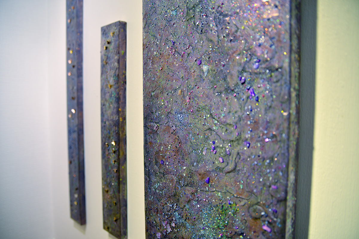 今回の展示では油絵の経験を活かした大振りの新しいパネル作品がご覧いただけます。
