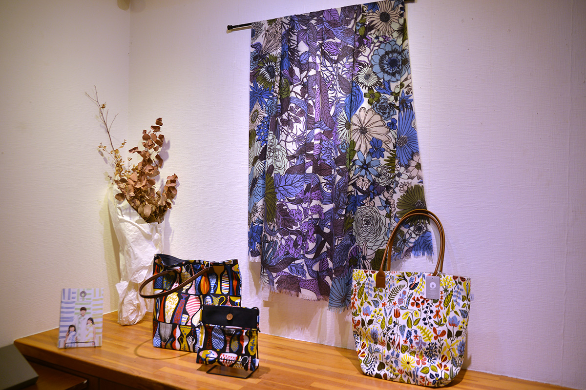 今春から取り扱いを開始したスティグ・リンドベリのパターンを使ったコットンバッグはとにかく軽くて丈夫。