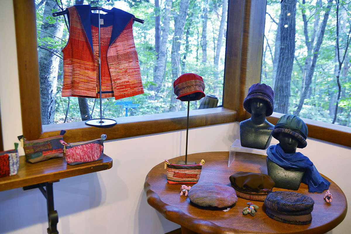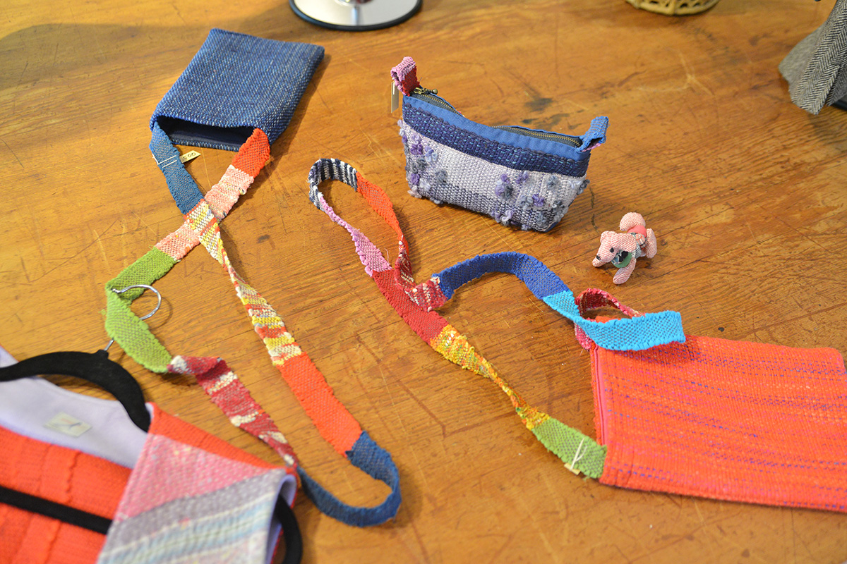 フィンランド伝統の裂織であるポッパナ織りや、古布、棚機さんご自身で染められた糸を使った作品。