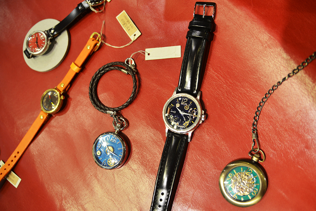 様々なモチーフを一つ一つ丁寧に組み上げた時計達。きっとお気に入りと出会えるはず。