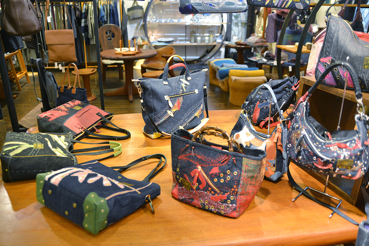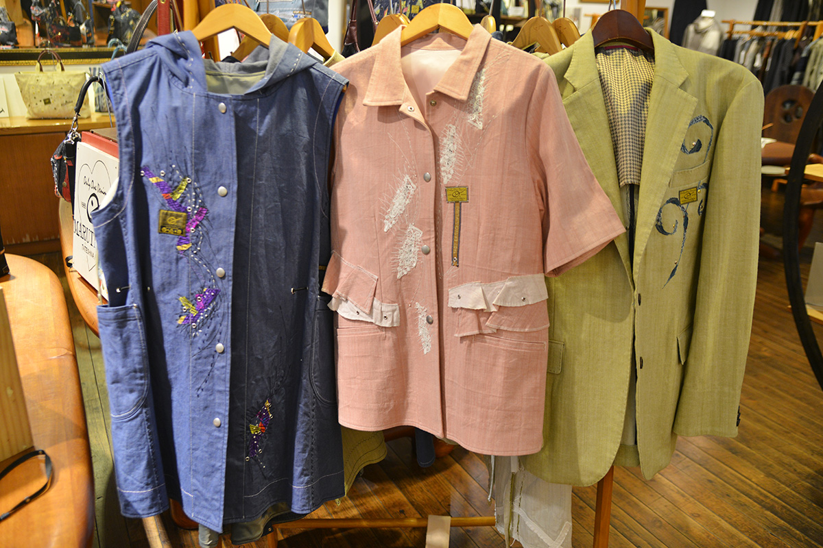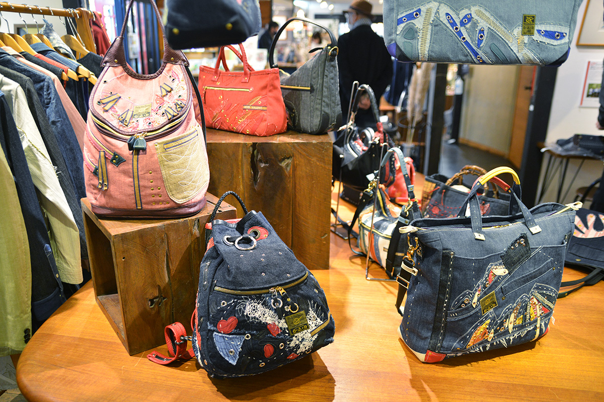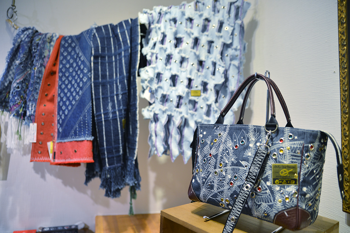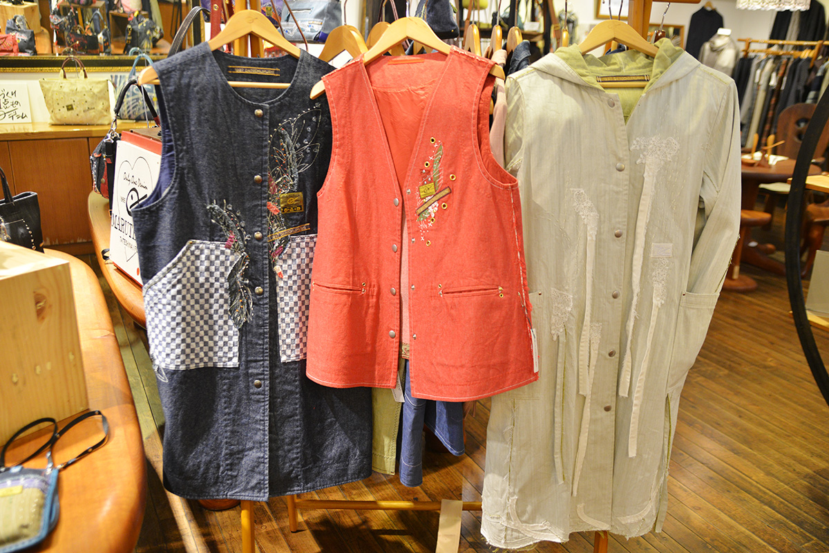 ご家族9人で制作される手作り1点ものデニムファッションが並びます。