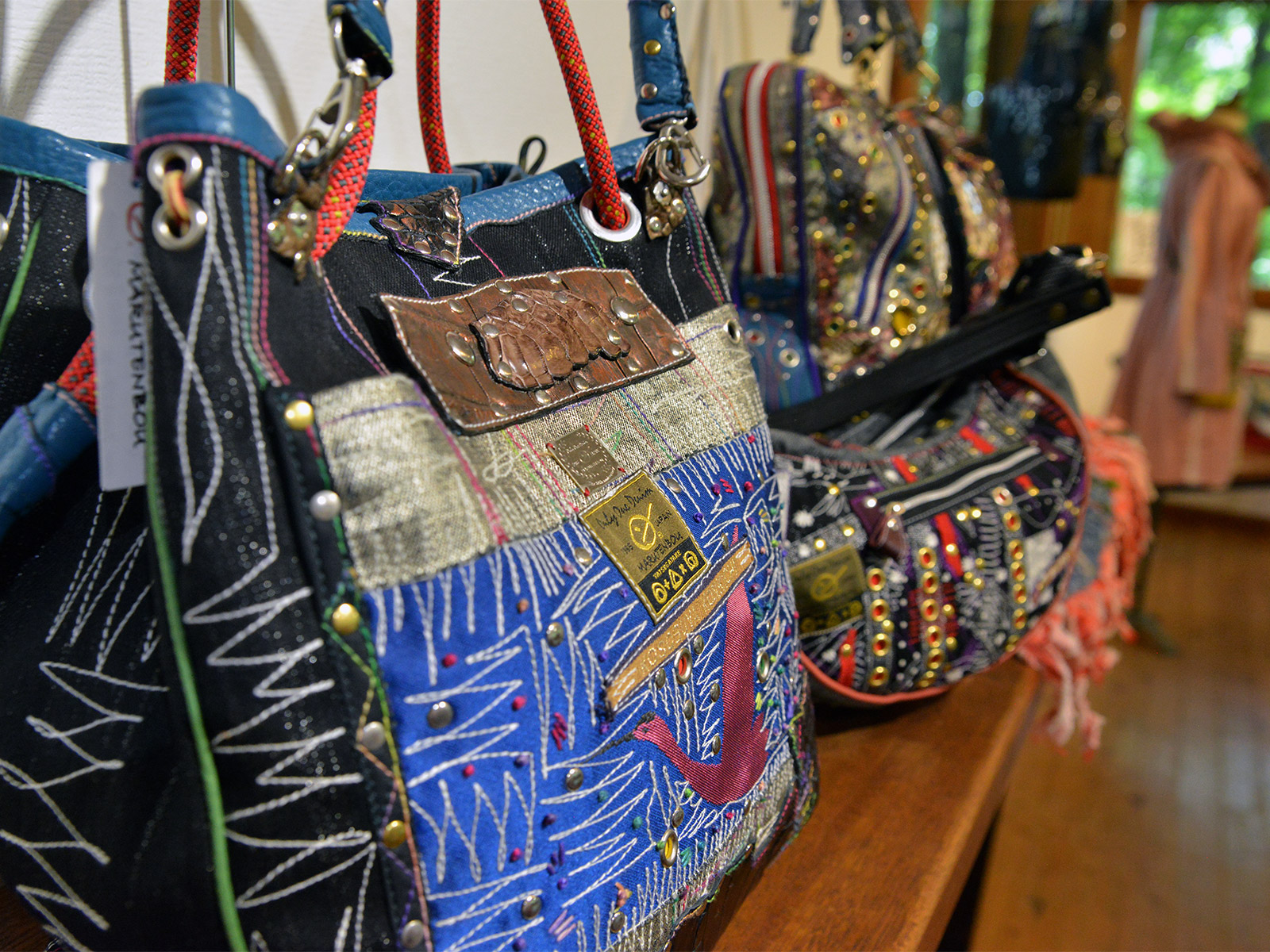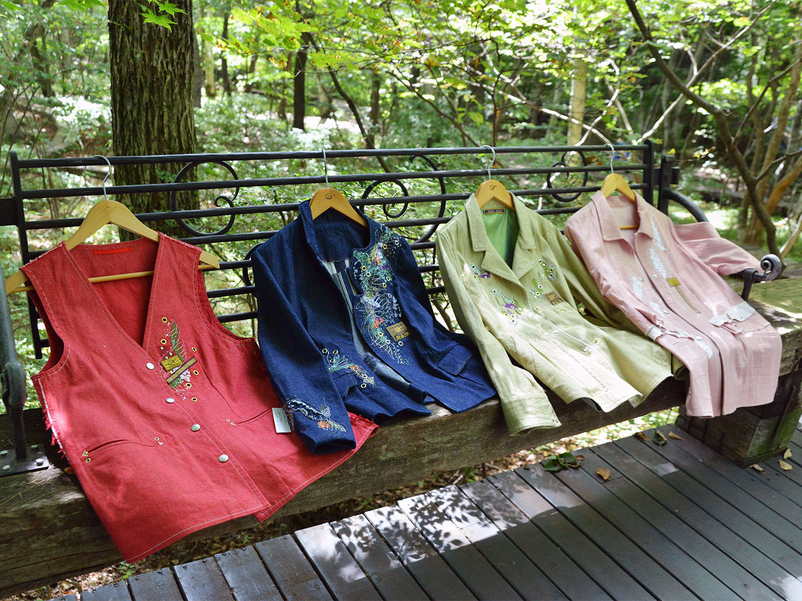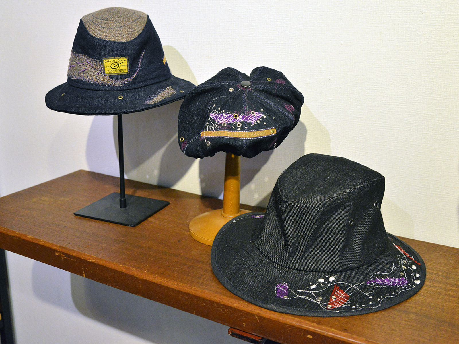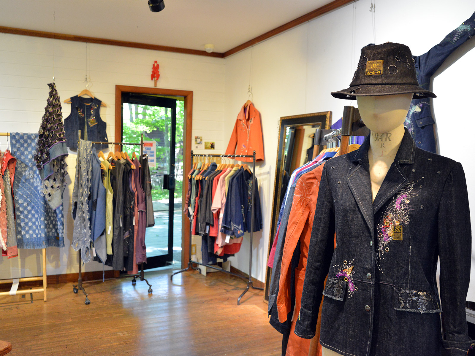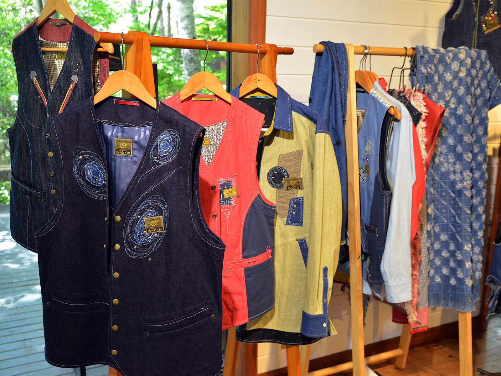 ご家族8人で制作される手作り1点ものデニムファッションが並びます。