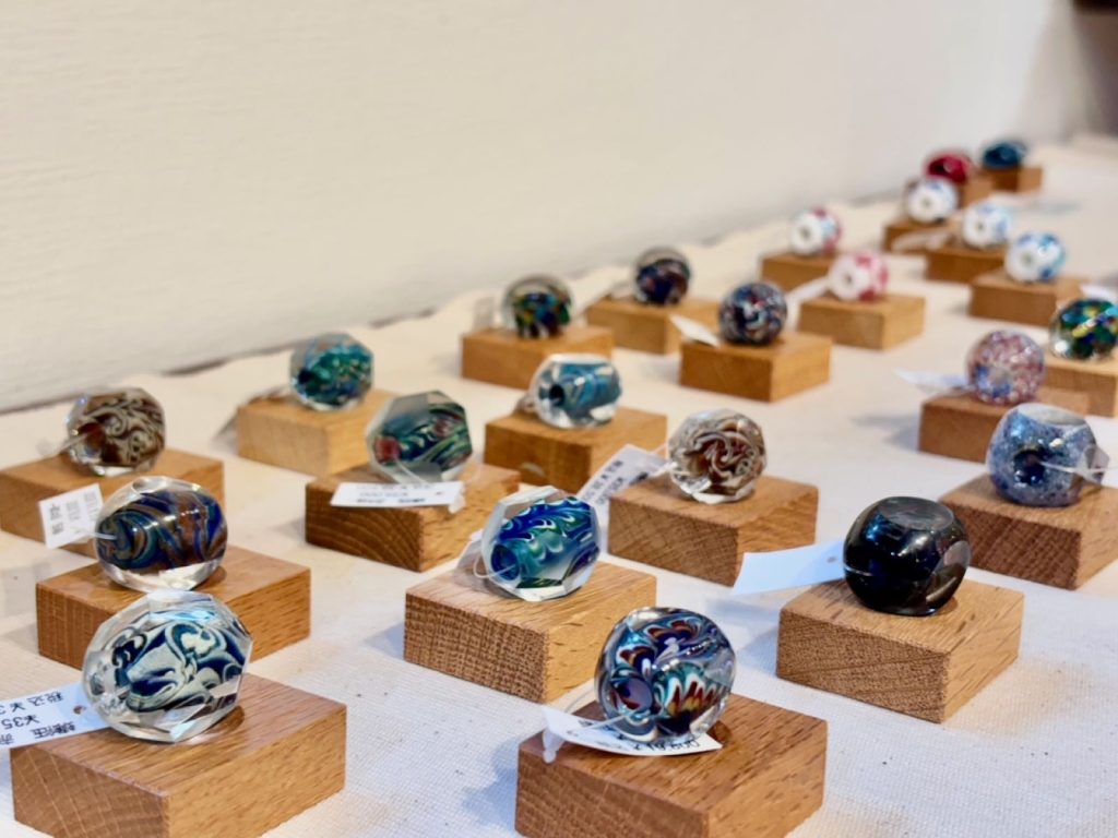 時代とともに受け継がれたトンボ玉から更に技法が発展して作られた作品を気軽に楽しんで頂けたらと思います。
