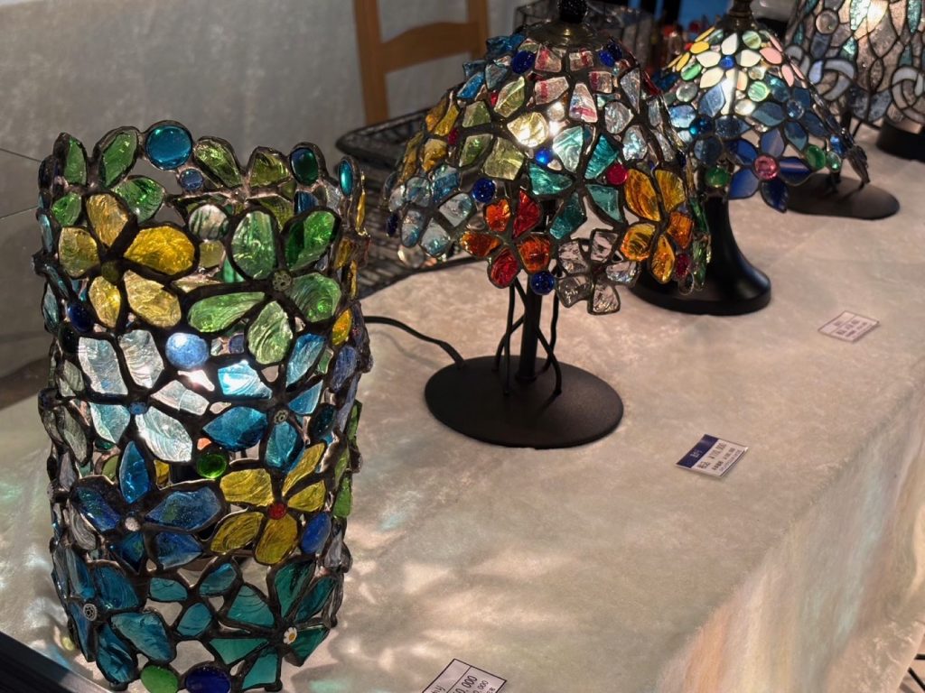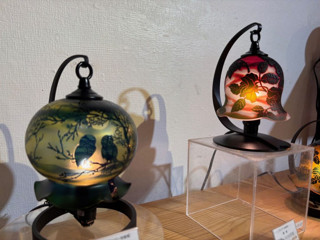 緻密さと複雑なデザインのグラスやランプ、光、飲み物、灯りなどが当たることで見え方が変わるのも魅力です。