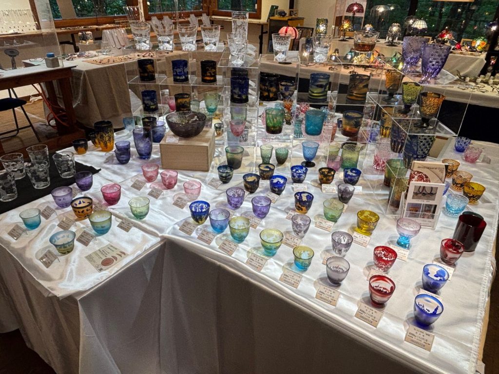 本日から赤木雄一さん、丹野幸広さん、三宅治良さんの三人のガラス職人による展示会がはじまりました。三社三様の匠の業がおりなすガラスの世界を是非ごらんくださいませ。