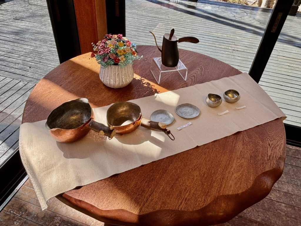 小林秀幹さんは自然の息吹を感じるモチーフを中心に、様々な金属時には木材、漆も併せて作りあげられる気品のある作品がならびます。今回は花器を中心に展示いたします。