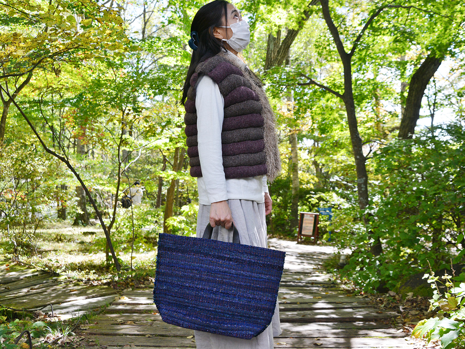 さっと羽織るだけ、手に持つだけでコーディネートを一段階引き上げてくれる、気軽さと上質さを併せ持つ国府寺さんの作品。